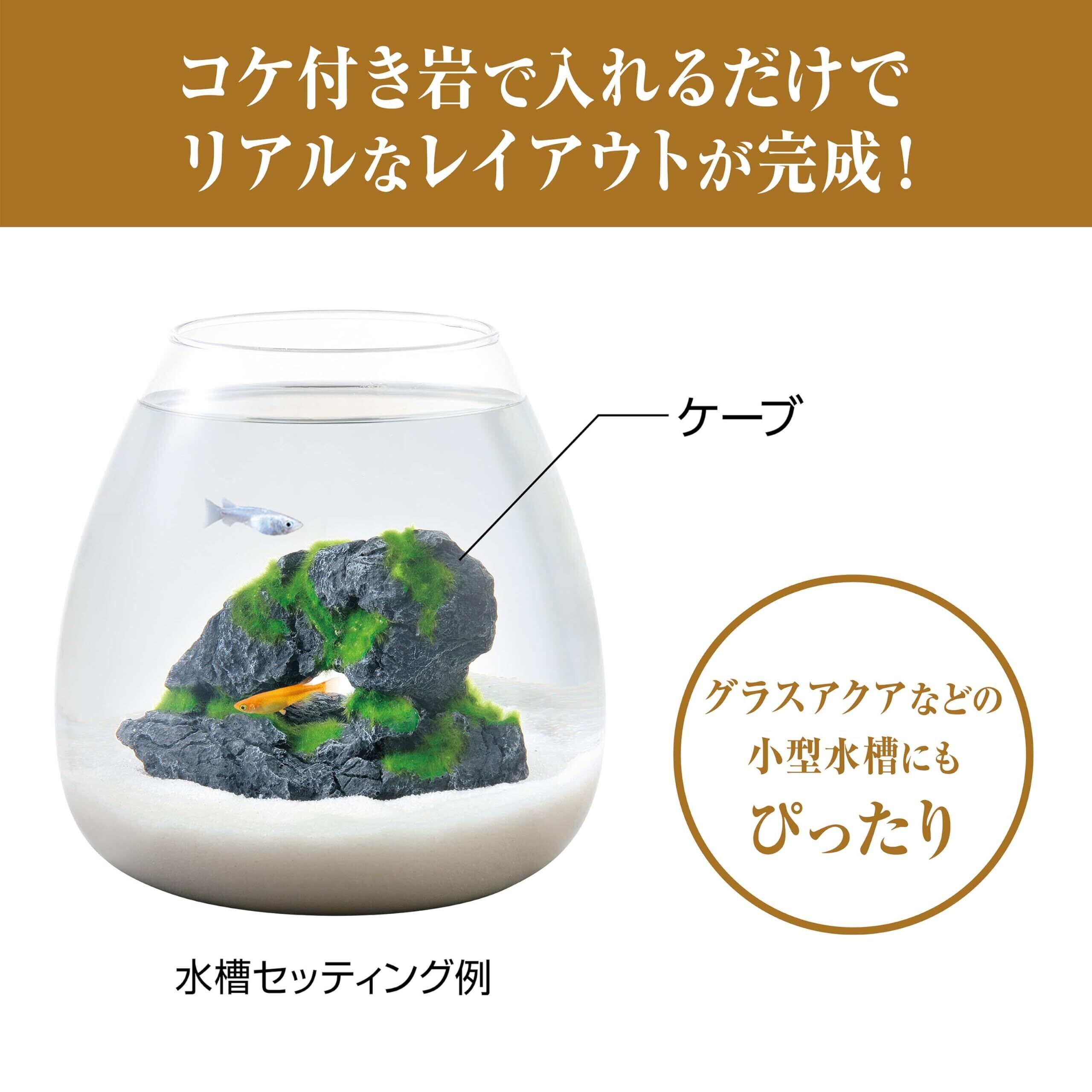 ●コケ付き岩で入れるだけでリアルなレイアウトが完成!グラスアクアなどの小型水槽にもぴったりなアクセサリー。