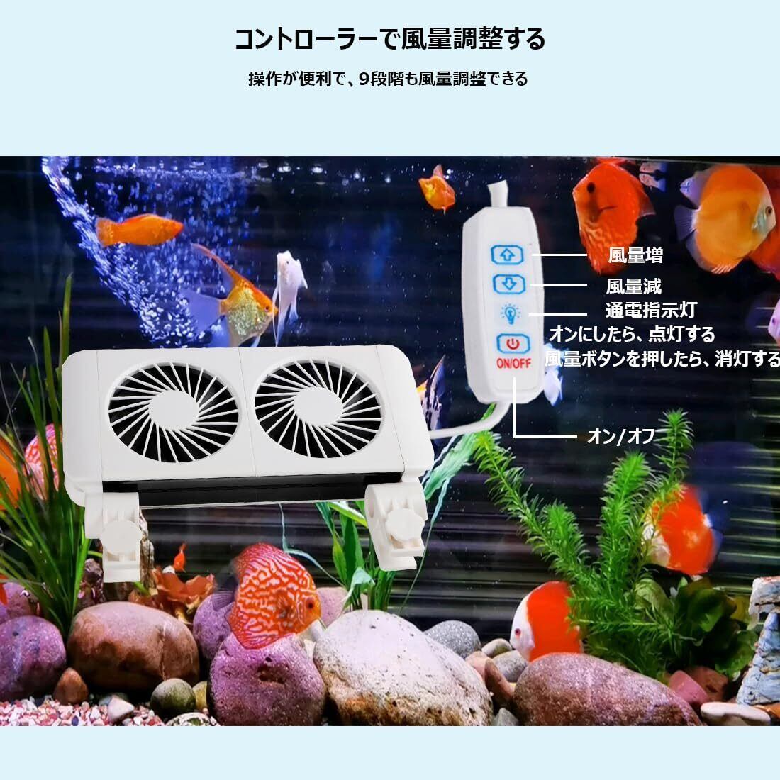 QOSEREN 水槽 ファン 冷却 クーラー コントローラー付き 水槽 クーラー 熱帯魚 ファン 9段階風量調整 夏水温上昇防止 クーリングファン アクアリウム 水槽 冷却 取り付け簡単 (白)