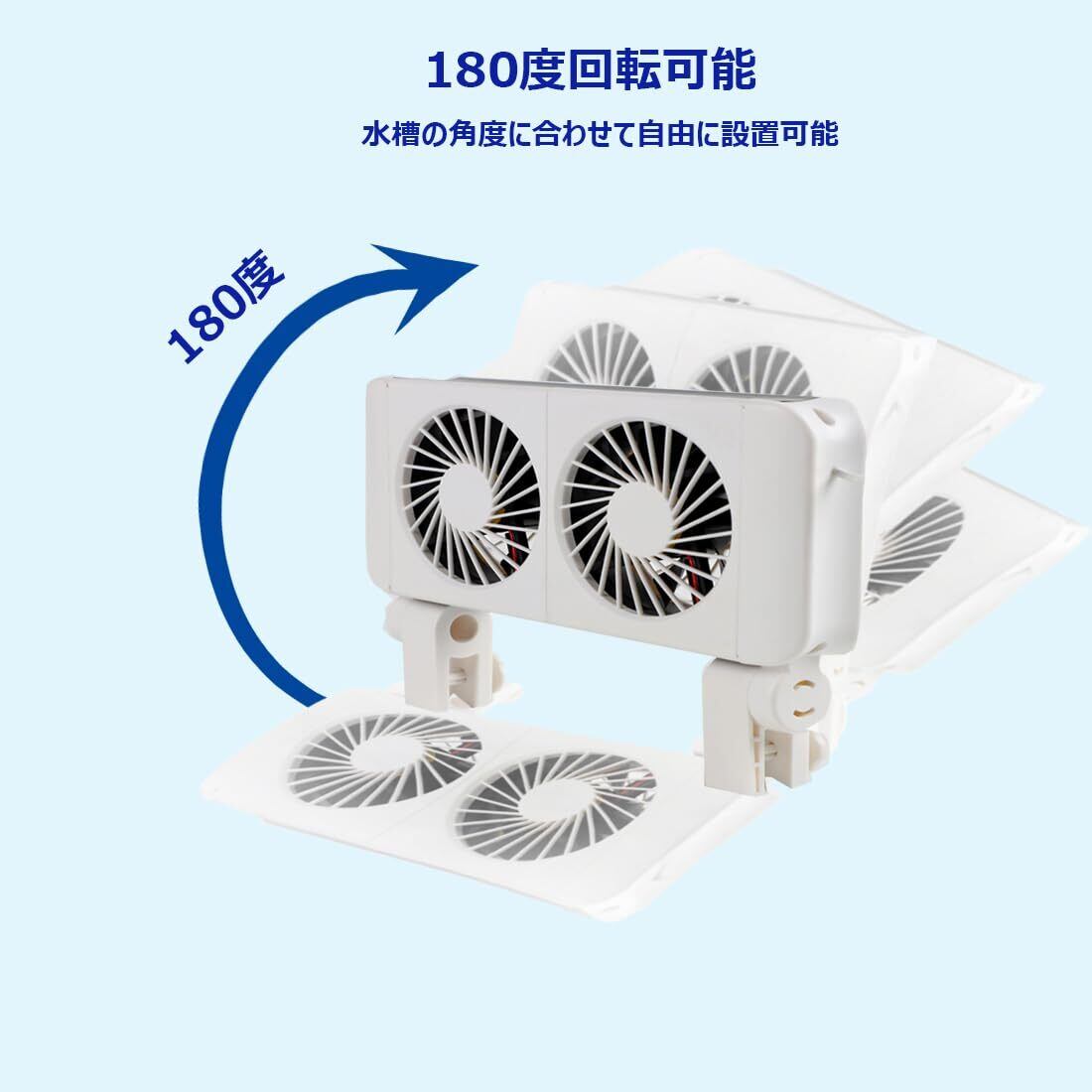 [180度回転調整可能な水槽冷却]水槽ファンのファンが180度調整できる設計で、ご使用されてる水槽の角度に合わせて調整できる、設置がとても簡単で、ご利用にもっと役立ちます。