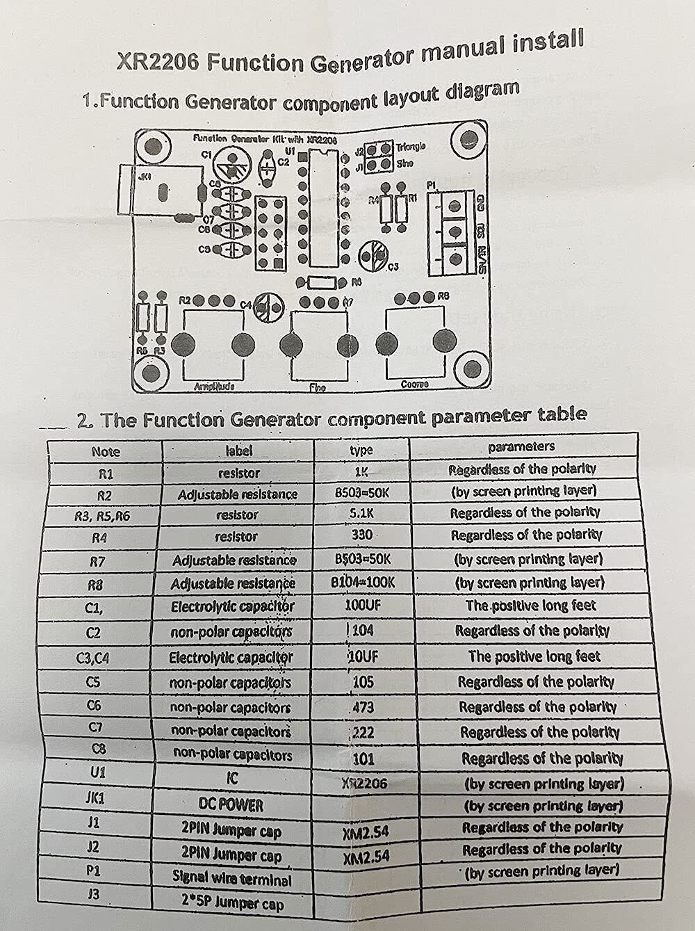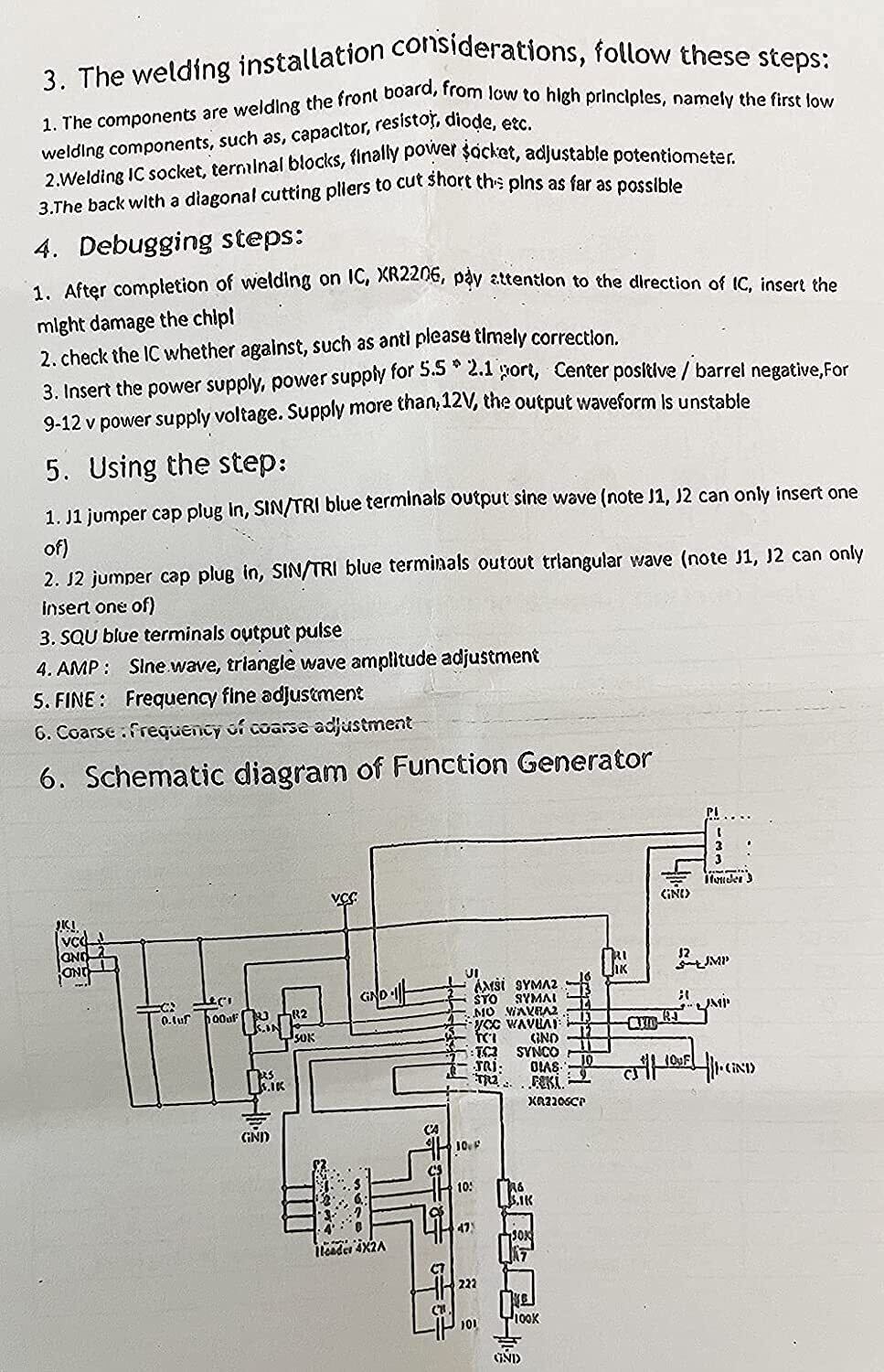 KKHMF XR2206 信号発生器 高精度 ファンクション信号発生器 DIYキット 正弦/三角/正方形 出力1Hz~1MHz 周波数振幅調整可能