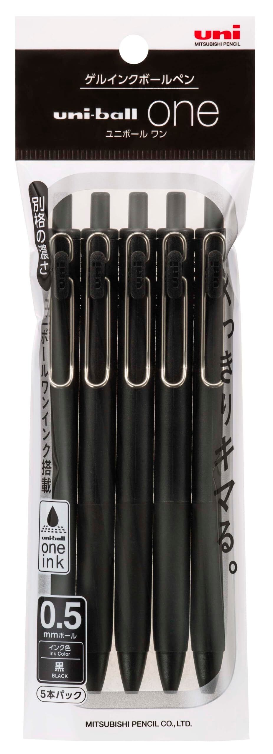 三菱鉛筆 ゲルボールペン ユニボールワン 0.5 黒 黒軸 5本パック UMNS055PBK.24