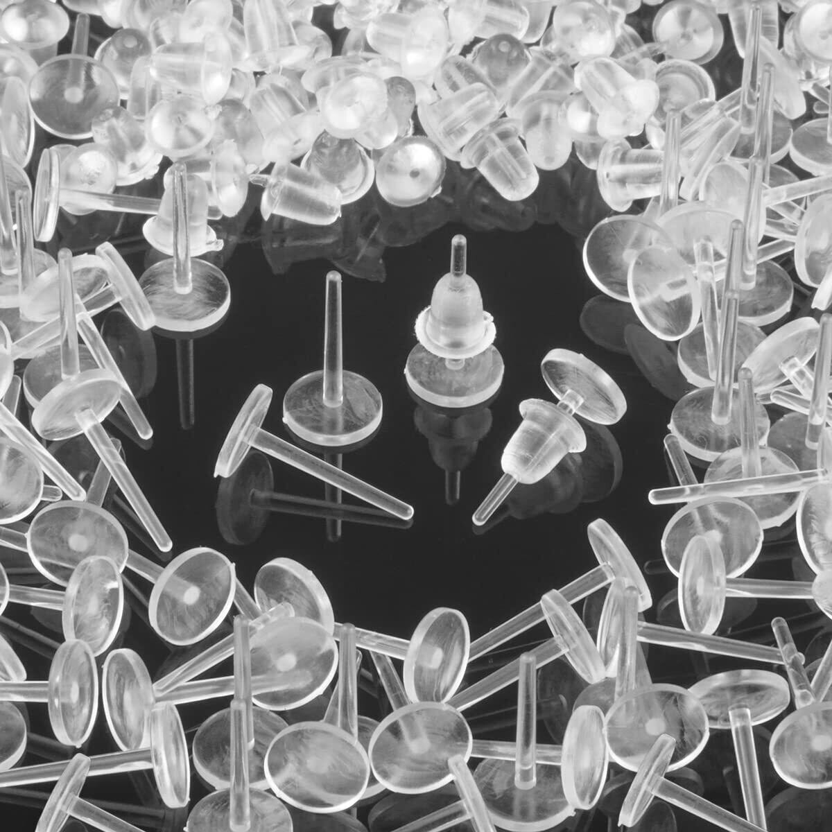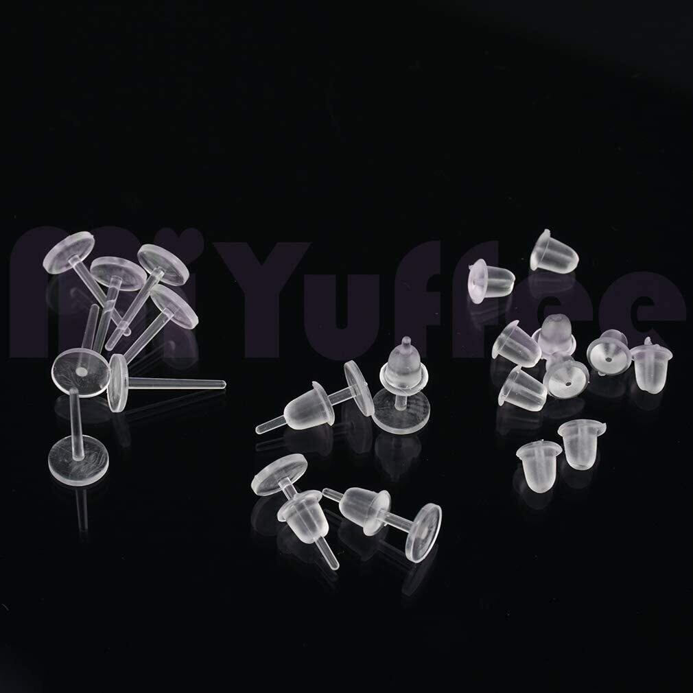 【在庫のみ】シークレット ピアス パーツ クリア 樹脂 皿付き シリコンキャッチ付き 金属アレルギーフリー (50ペア100セット)