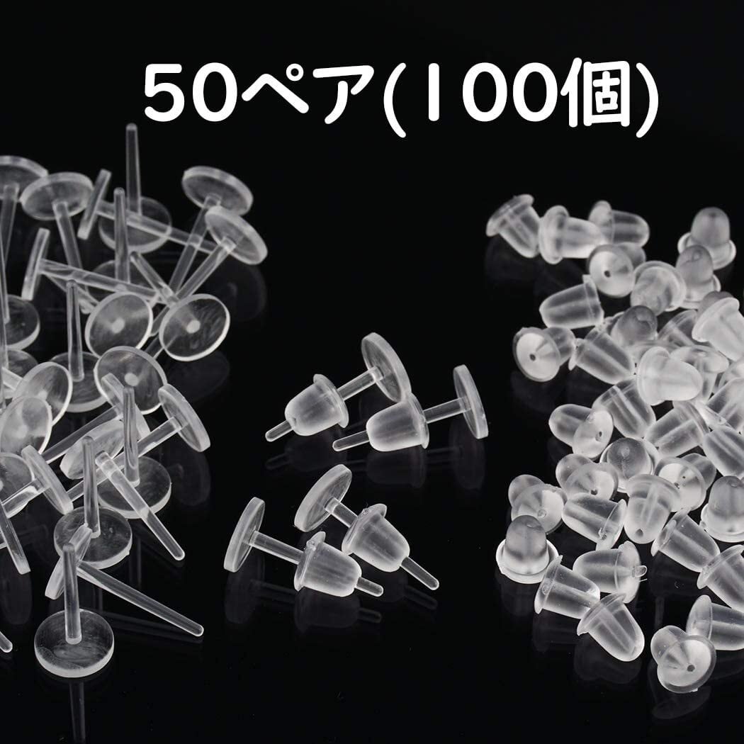 シークレット ピアス パーツ クリア 樹脂 皿付き シリコンキャッチ付き 金属アレルギーフリー (50ペア100セット)