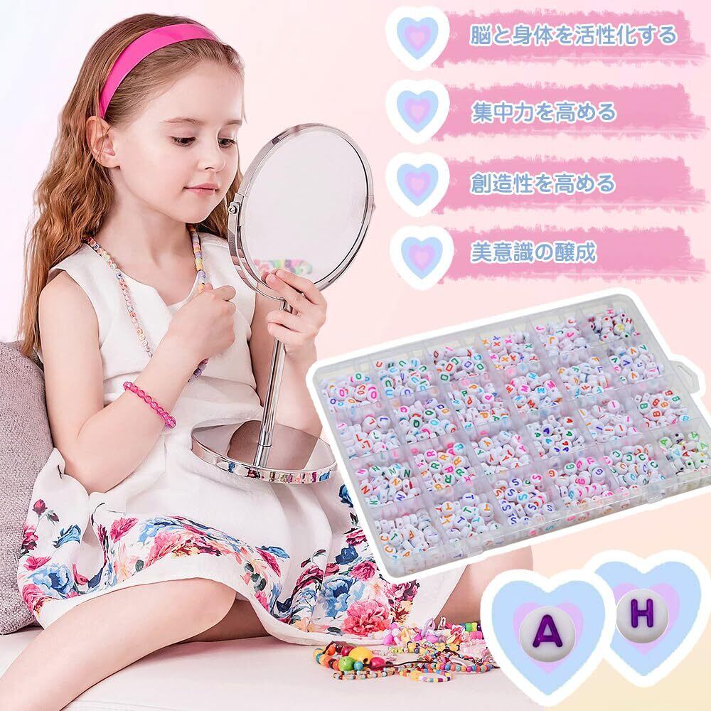 カラフルな文字「A~Z」、合計約1200個のビーズを自由に組み合わせて、様々なネックレスやブレスレットを作ることができ、アクセサリークラフトの楽しさを味わうことができます。ビーズクラフトを通して、暇つぶしやストレス解消だけでなく、脳の活性化、集中力や創造力の向上、美意識を養うことができます。