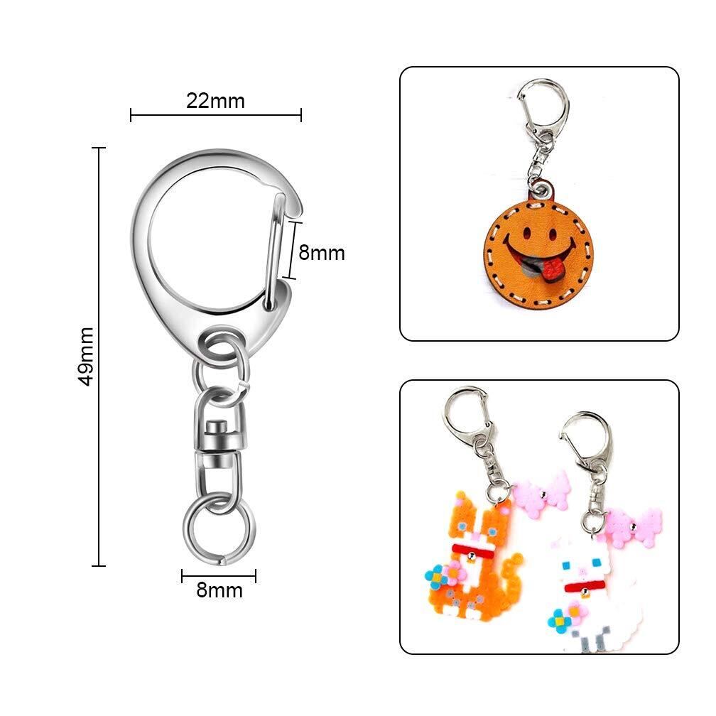 Lasoll キーホルダー金具 50個入り キーホルダー パーツ キーリング リング チャーム ストラップ ナスカン 回転フック 丸カン 付き ワンタッチ 手芸用品 ハンドメイド アクセサリー 手作り 素材 DIY 副資材 全長49mm シルバー