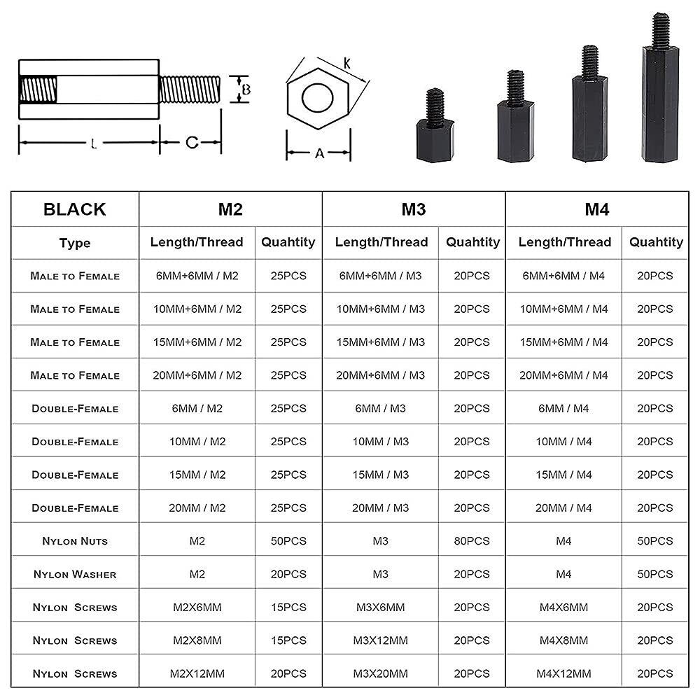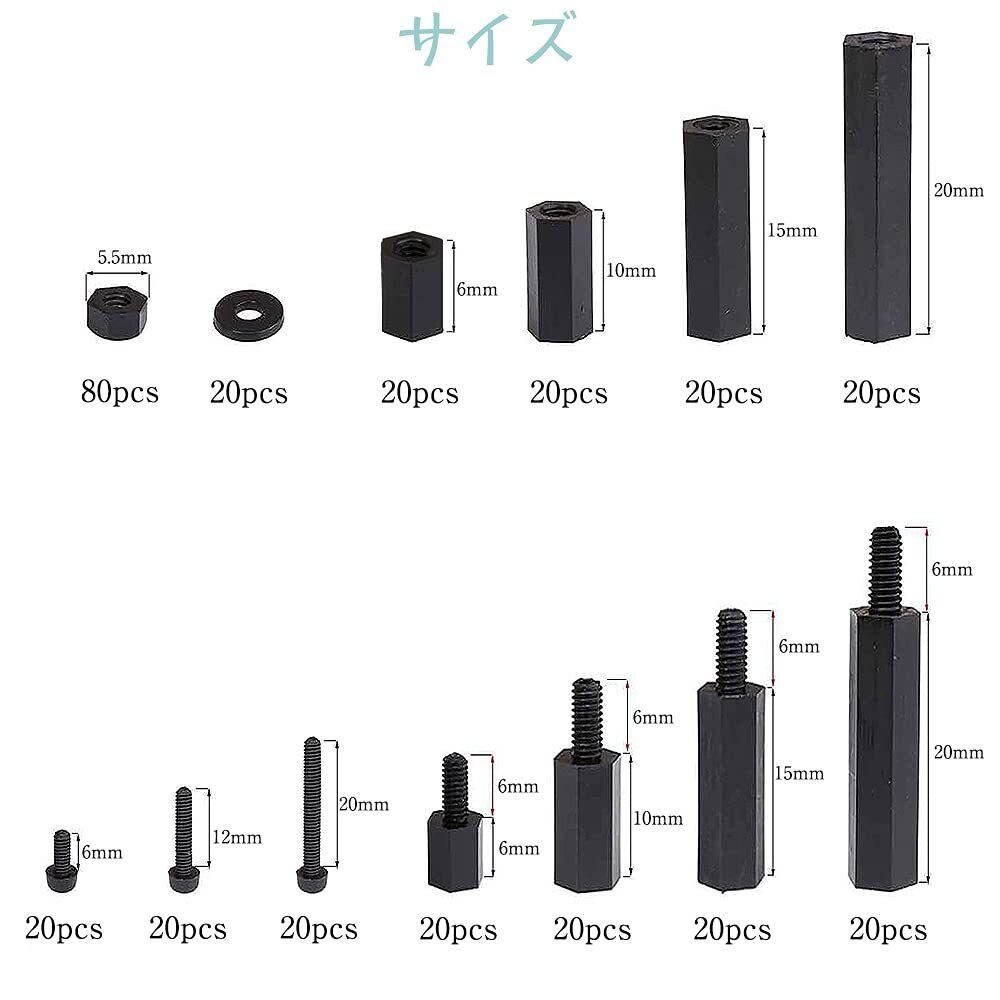 M3 ナイロンネジナット 320個セット 六角スペーサー ネジセット スタンドオフ M3六角柱 六角ネジ 六角 ボルト ナット キット 基板固定/機械/修理/精密機械に 収納ケース付き ブラック (M3)