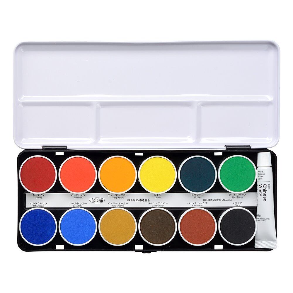 【商品名】 ホルベイン 固形水彩絵具 ケーキカラー C030 不透明12色セット 02030 【商品説明】 水彩絵具の水分を取り除き、固めた。水をつけた筆でなでると溶けるので野外での使用に便利。透明色と不透明色の2種類。 水彩絵具の水分を取り除き、固めた。水をつけた筆でなでると溶けるので野外での使用に便利。透明色と不透明色の2種類。