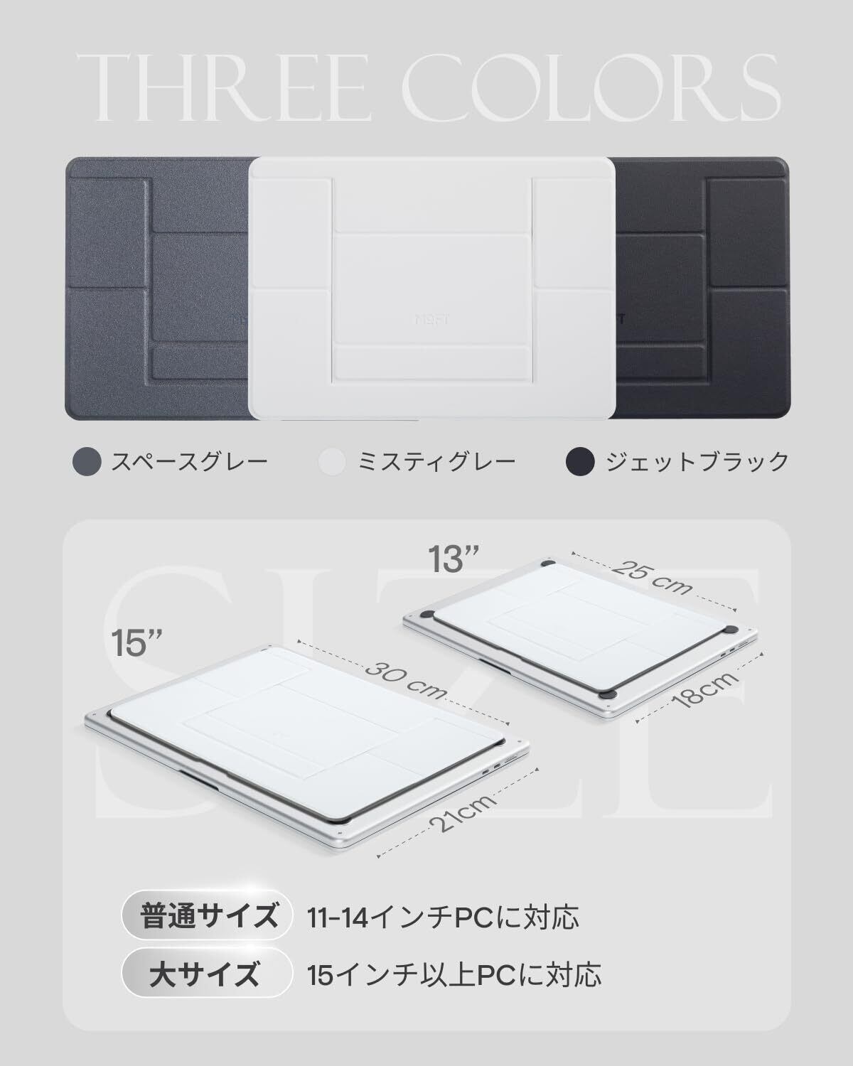 【数量限り】MOFT【公式直営店】 ノートパソコンスタンド 非粘着式 15°&25°二段階調整 超軽量 薄型 ノートpc タブレット Macbookスタンド 互換性 7~11インチのタブレット、 11~14のpcに対応 持ち運び便利 収納便利 コンパクト 放熱穴付き 折り畳み(ミスティグレー)