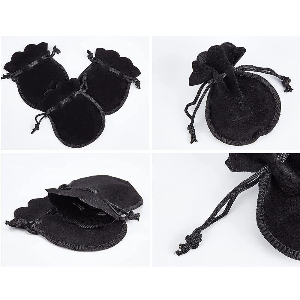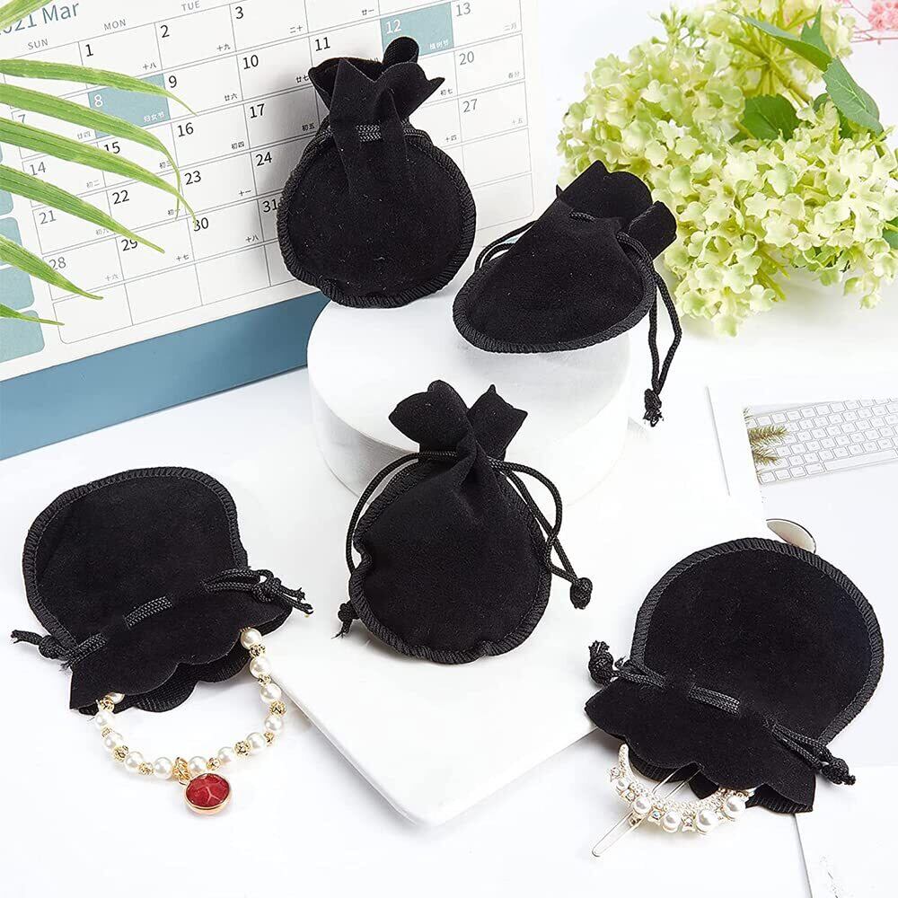 【在庫のみ】巾着袋 ベロア調 10枚入り ジュエリーポーチ アクセサリー保存 多機能 ギフトバッグ 小物入れ ラッピング プレゼント用収納袋 (ブラック)