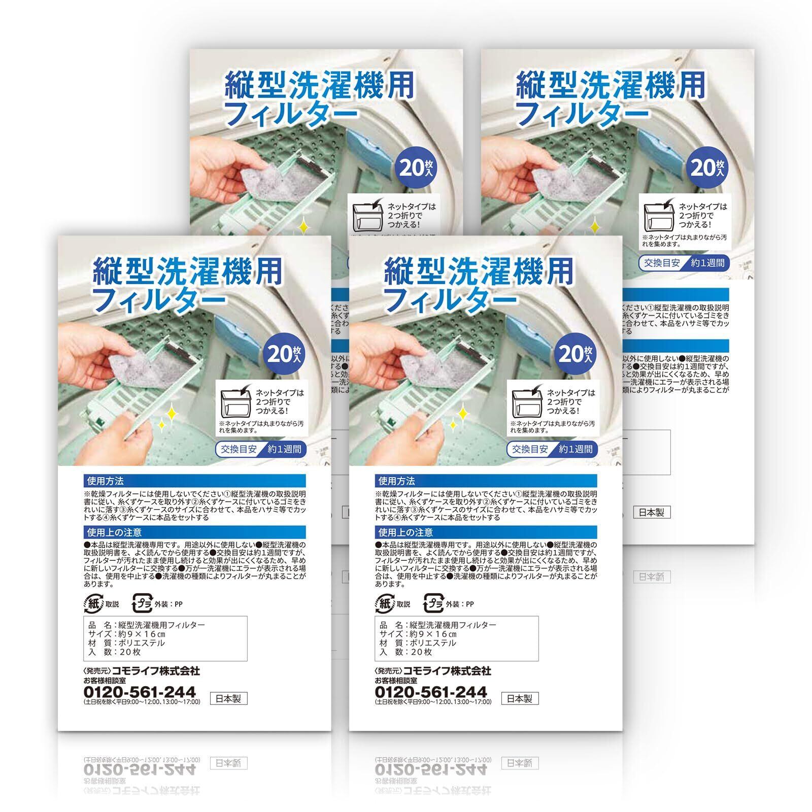 【在庫のみ】コモライフ 縦型洗濯機用フィルター 20枚入×4 洗濯機 糸くずケース ゴミ取り 日本製