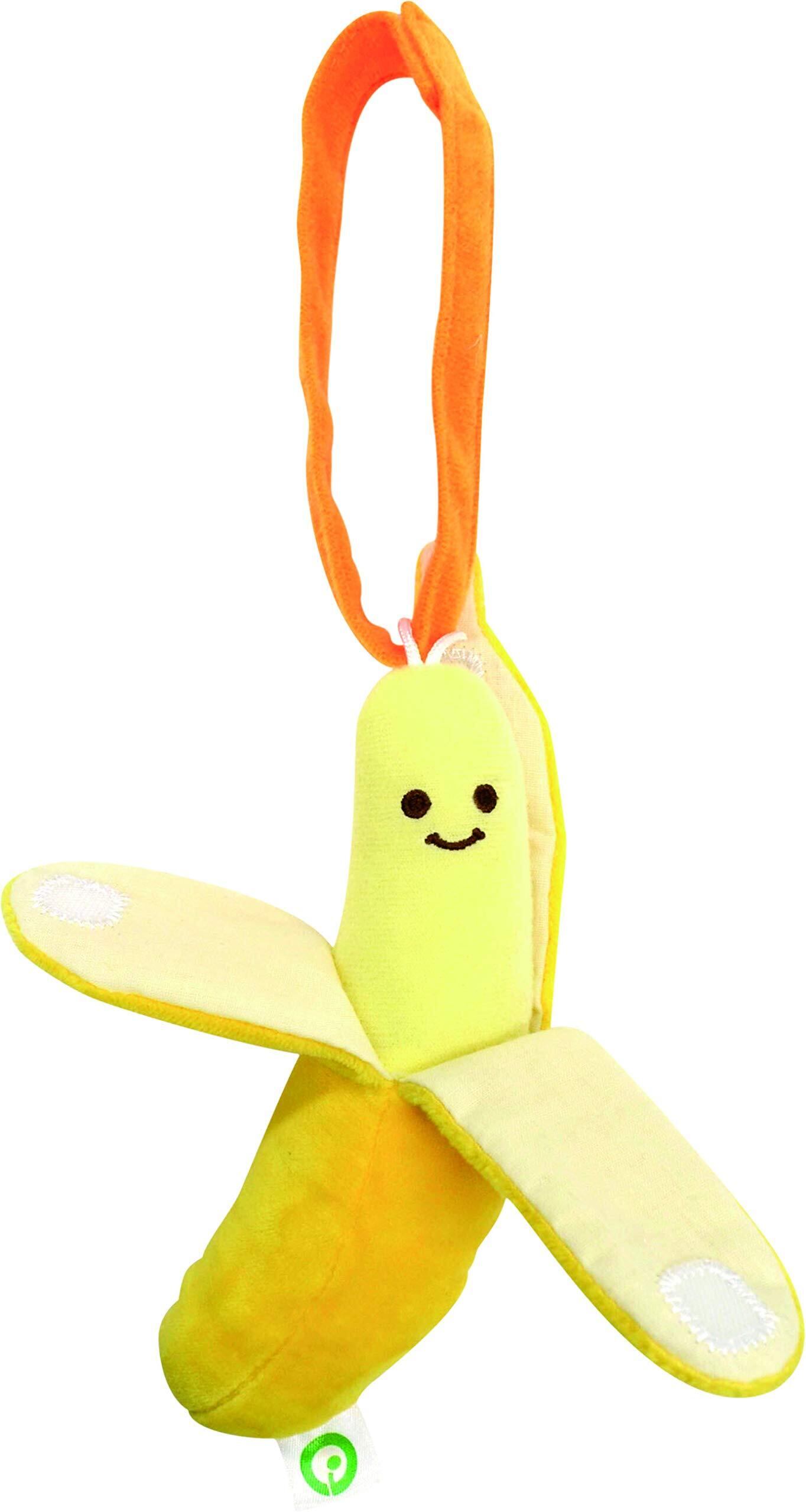 指先を使って遊びながら脳を刺激することで発達を促す知育玩具「ファインモータートイ」より、手洗い可能な布製ミニラトルが登場しました。バナナをモチーフにしているので、身近な食べ物への好奇心を育むきっかけにもなります。リンリン可愛い音とそれぞれに触って楽しい仕掛けがついています。バナナの皮をパリパリむいたり閉じたりしていないいないばぁ遊びができ、ママとコミュニケーションをとりながら遊ぶことができます。ベビーカーやママバッグにつけたりとお出かけ時にうれしいベルトが付いています。