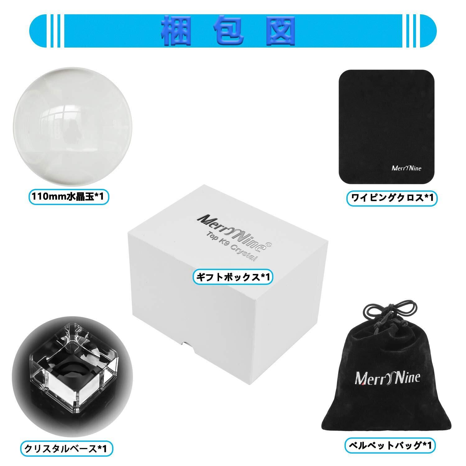 MerryNine マジック クリスタルボール110mm 無色透明 水晶玉 クリスタル台座付き 拭き取り布 フランネルバッグ 風水グッズ インテリア 置く物 女性向け クリスマス 新年 プレゼントフォトプロップス