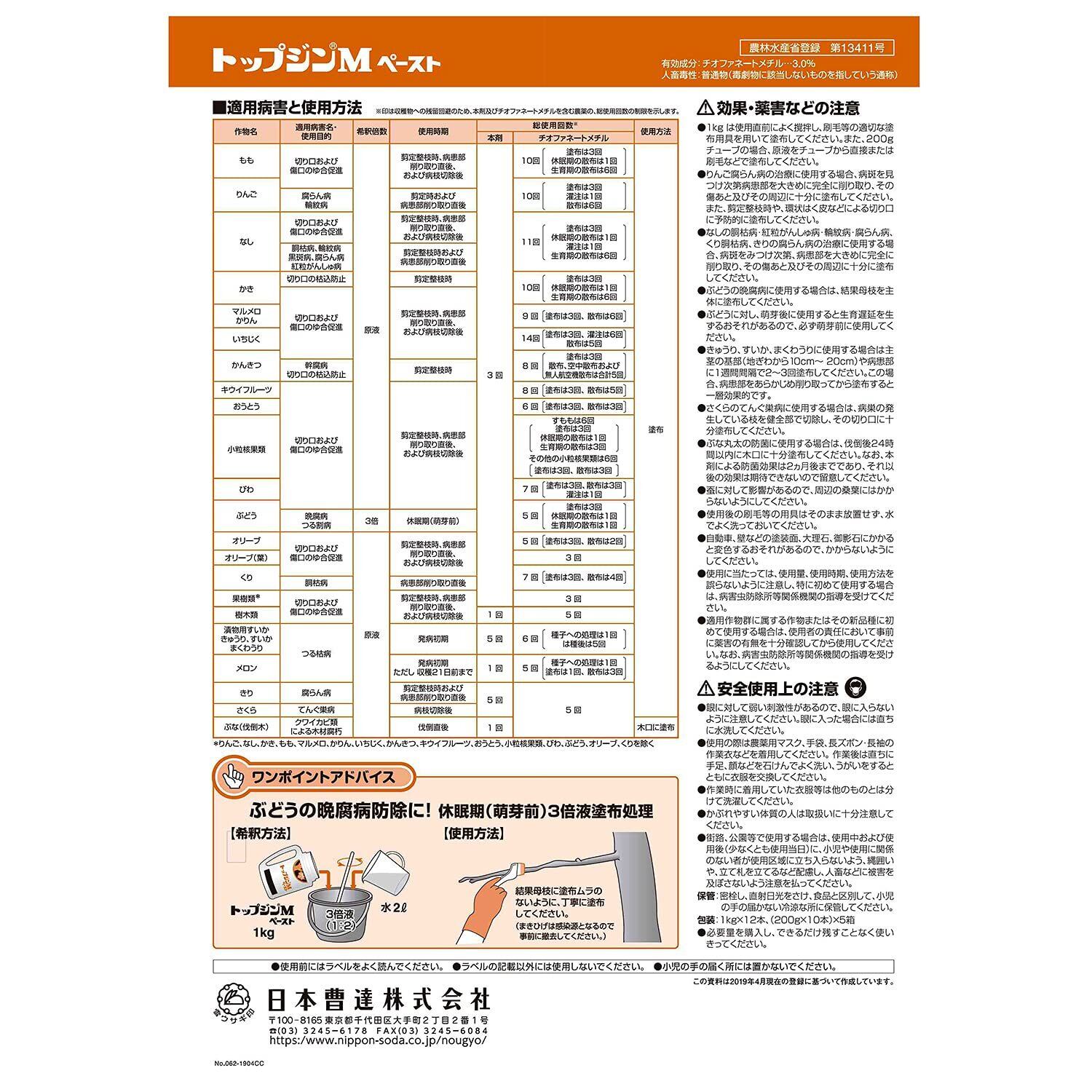 日本曹達 殺菌剤 トップジンM ペースト 200g 癒合剤 樹木切り口保護剤 園芸 剪定