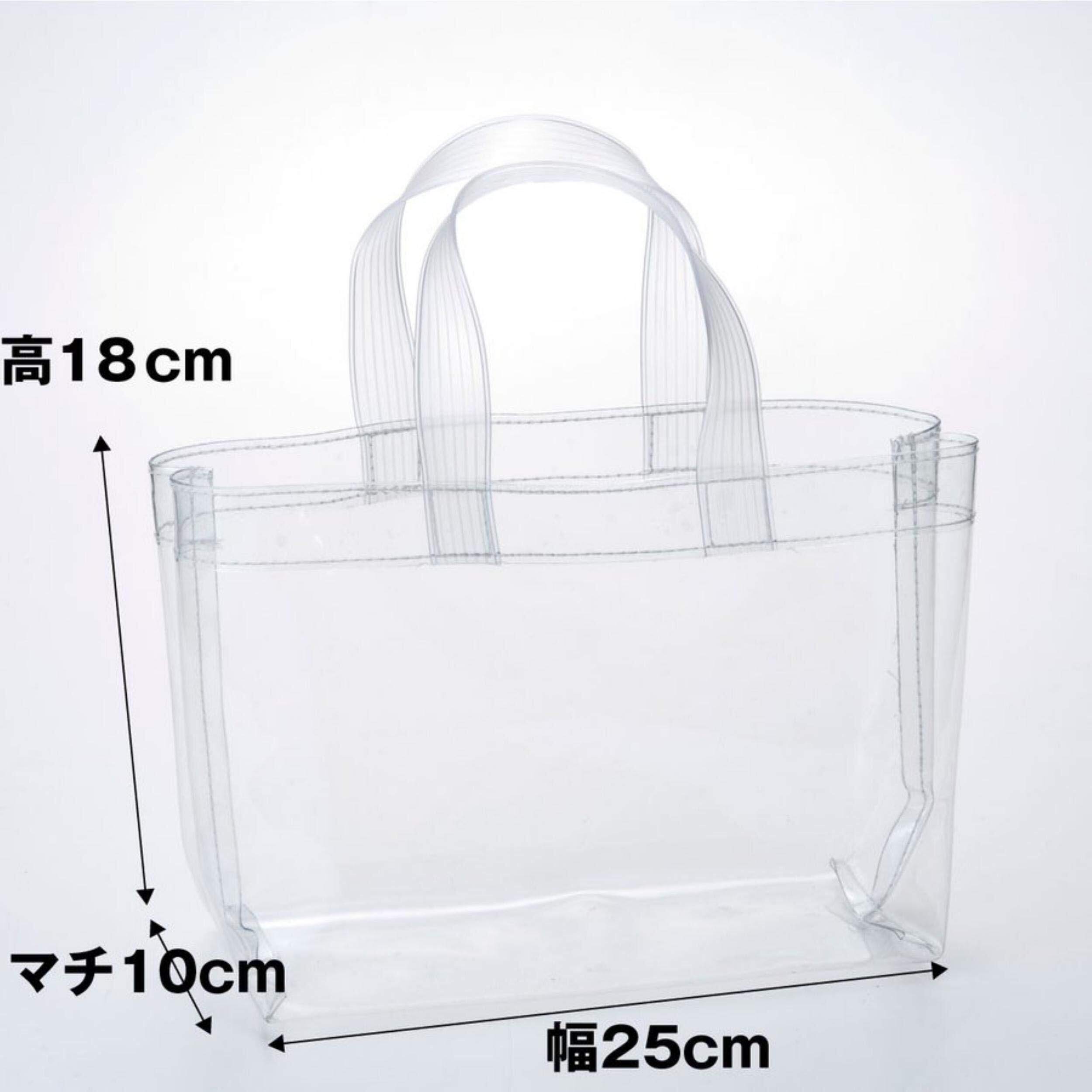 サイズ:幅250×マチ100×高180mm、 ハンドル長/340mm 、 生地厚/0.5mm 素材:PVC仕上げ:縫製加工、 包装:抗菌pp袋入