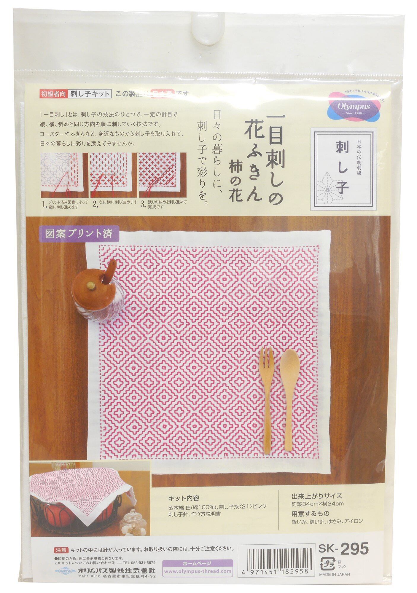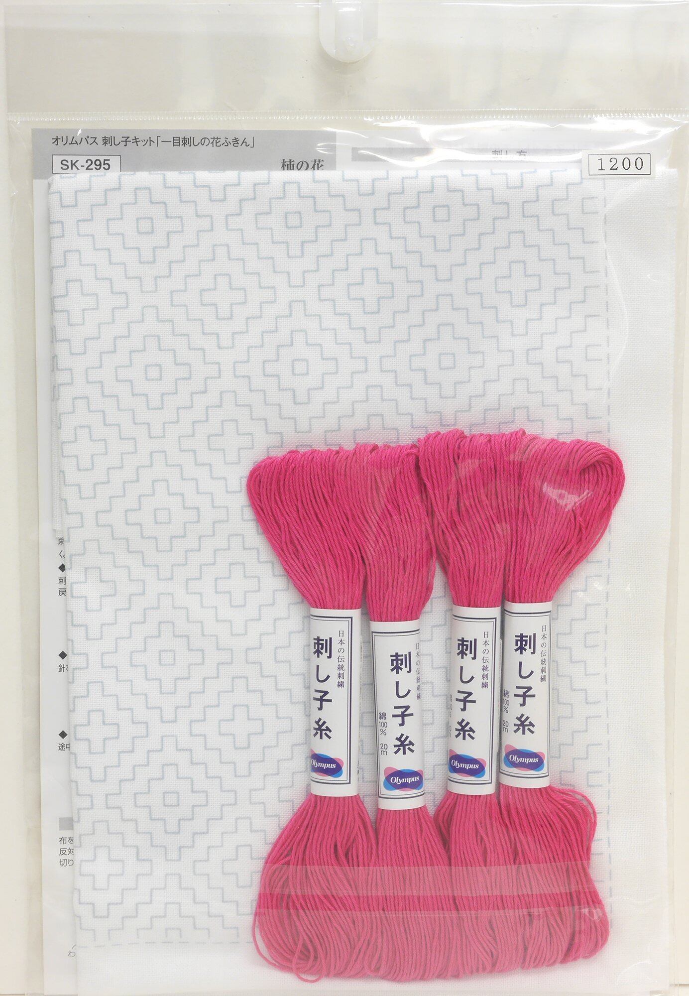 【新着特価】オリムパス製絲 刺し子キット 一目刺しの花ふきん 柿の花 SK-295