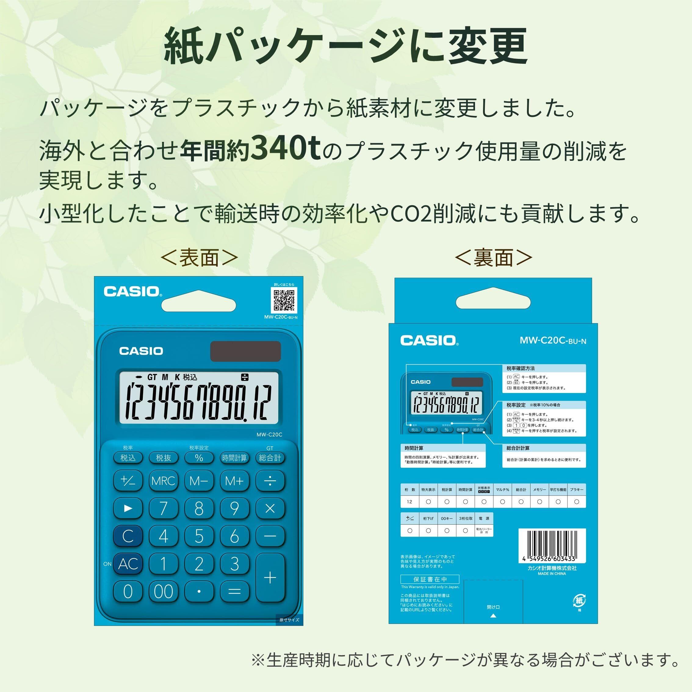 カシオ カラフル電卓 レイクブルー 12桁 ミニジャストタイプ MW-C20C-BU-N