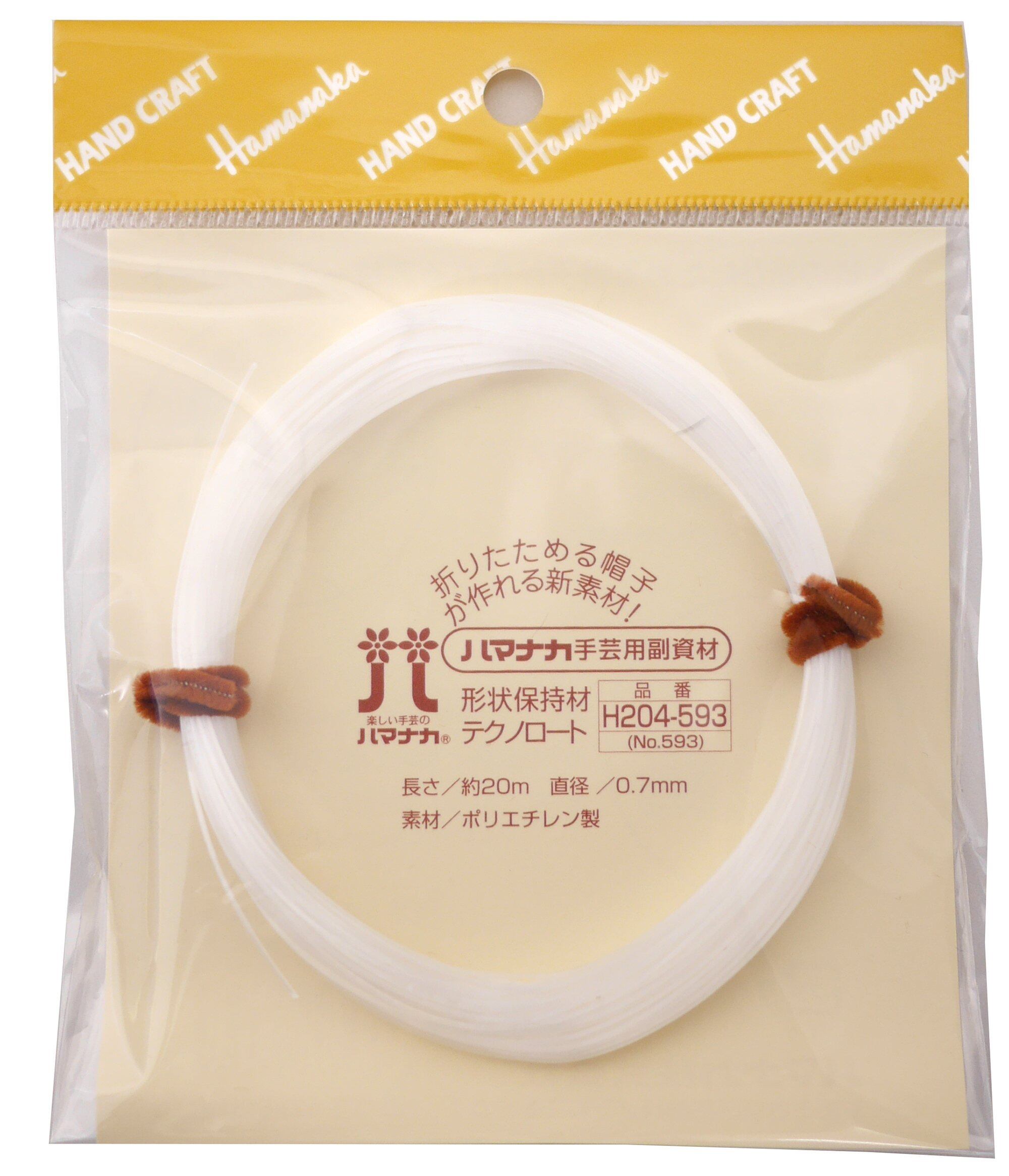 【商品名】 ハマナカ テクノロート 形状保持材 20m H204-593 【商品説明】 サイズ:直径約0.7mm×長さ約20m 素材:ポリエチレン 様々な形に曲げられ、形を保てる形状保持芯材です。 ・サイズ:直径約0.7mm×長さ約20m ・素材:ポリエチレン (より)