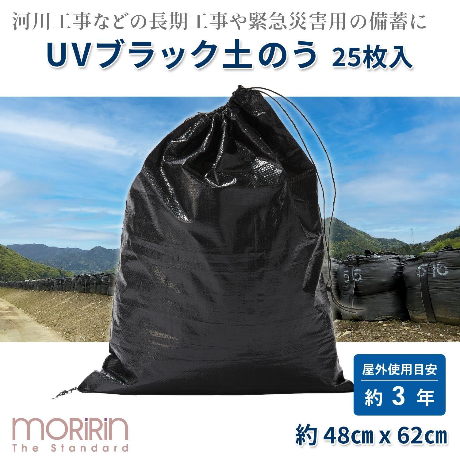 ![【在庫のみ】[モリリン] 土のう袋 48×62㎝ 25枚入り ブラック 使用目安3年 ゴミ袋 廃棄 PPガラ袋 水害対策 防災用品 豪雨 台風 震災 DBK](https://baseec-img-mng.akamaized.net/images/item/origin/6da44c422f8787d4a0d1f3eb1597d2c7.jpg?imformat=generic)
