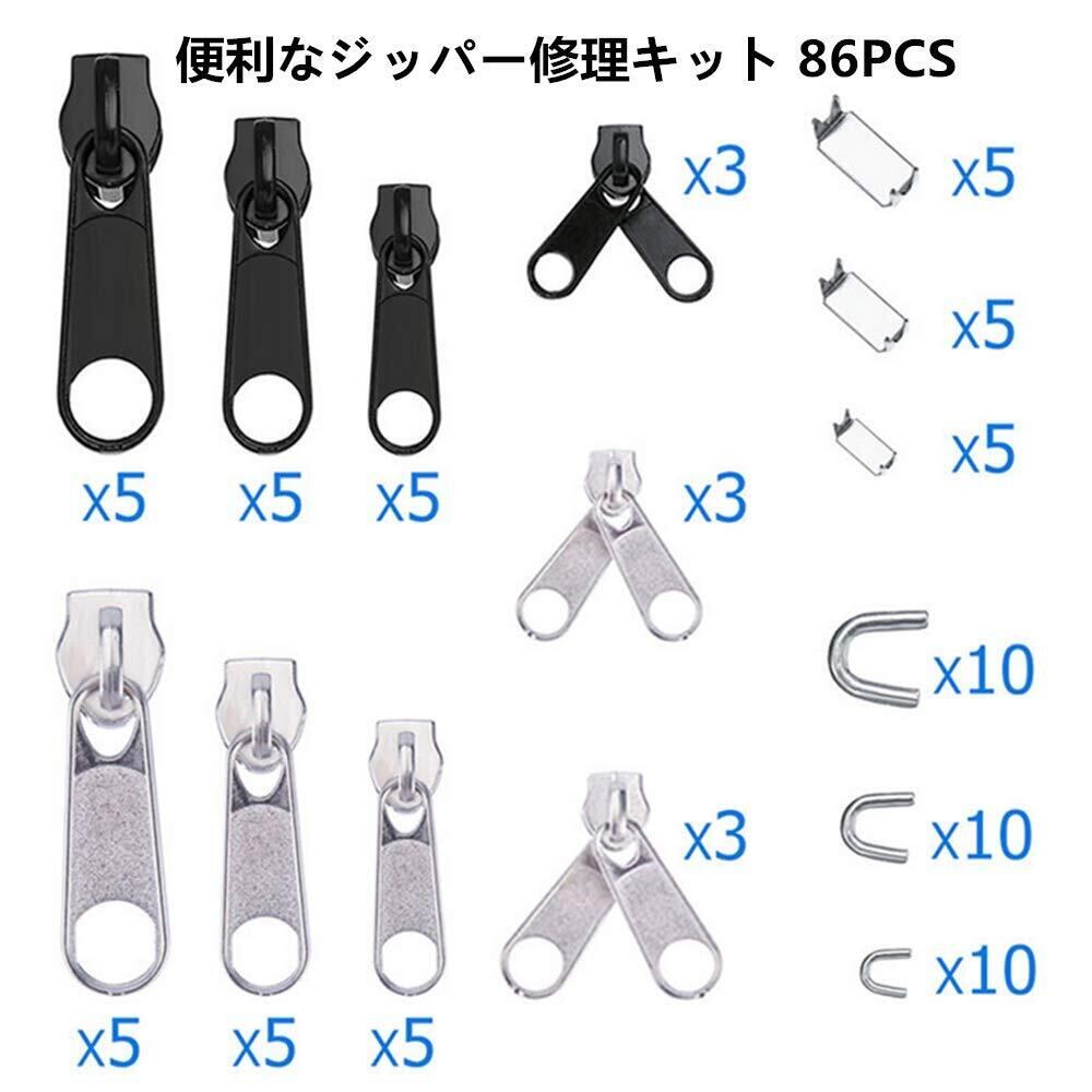 ジッパー ファスナー修理キット 修理用ペンチ2個付き 縫製 交換用 DIY ジッパー ファスナー引っ張り 多機能ジッパーヘッド 財布裁縫/手作り/服装/ 荷物/手芸 修理コート /バッグに使用でき 簡単ジッパー修理屋さんに適用(86pcs入り)