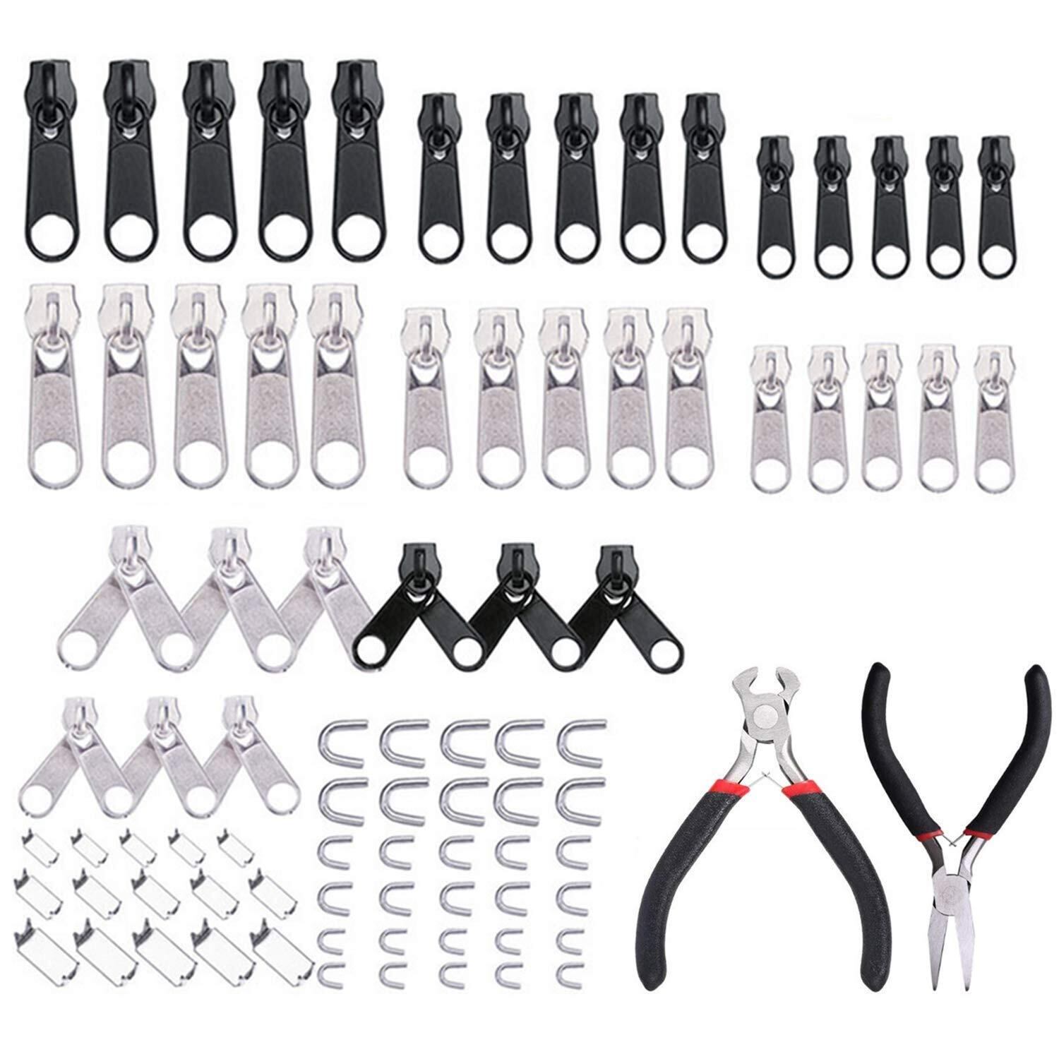 【数量限り】ジッパー ファスナー修理キット 修理用ペンチ2個付き 縫製 交換用 DIY ジッパー ファスナー引っ張り 多機能ジッパーヘッド 財布裁縫/手作り/服装/ 荷物/手芸 修理コート /バッグに使用でき 簡単ジッパー修理屋さんに適用(86pcs入り)