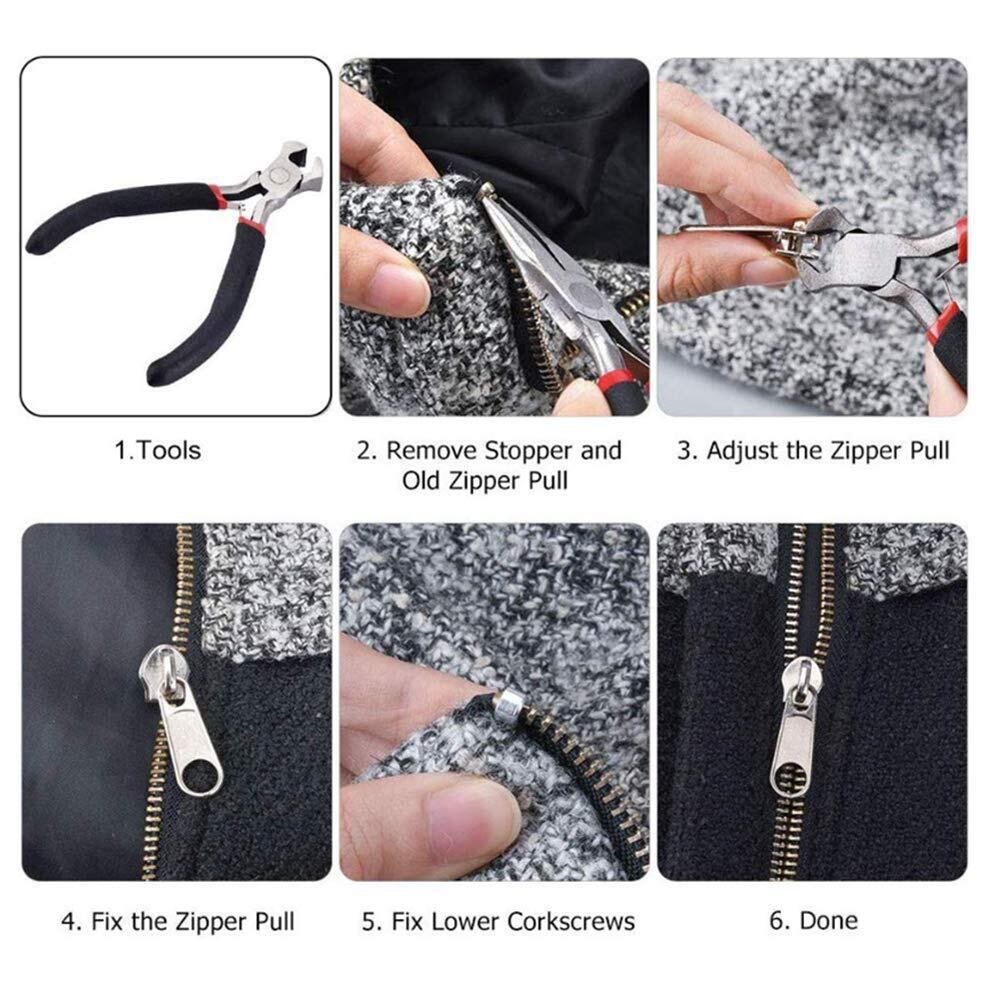 【修理用ペンチ2個付き】:ジッパー取り付ける2個ペンチが付いています。10.5x7 cmのコンパクトなサイズで 、ファスナーストッパーを取り付けること、またはジッパーのとい付けることなどにも使いやすいです。