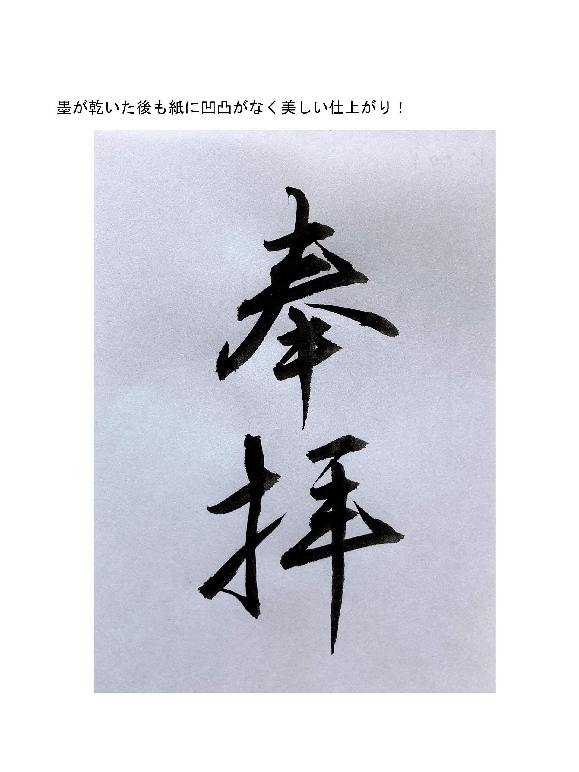 ■特徴:半紙等と比べ墨の吸収はゆっくりですが、紙の平滑性に優れているので、墨書きの後も紙の凸凹ができず美しい仕上がりです。墨の色も黒く美しく残ります。※半紙のような書き心地をお求めのお客様は、紙TO和プレミアム奉書紙をお試しくださいませ。