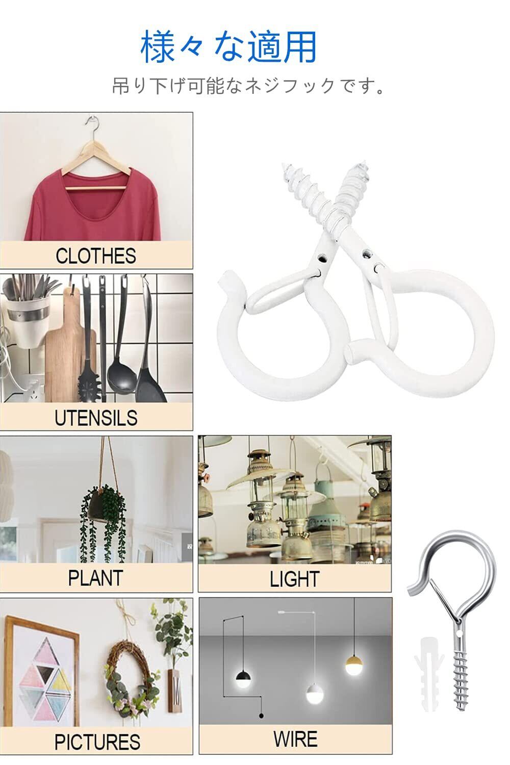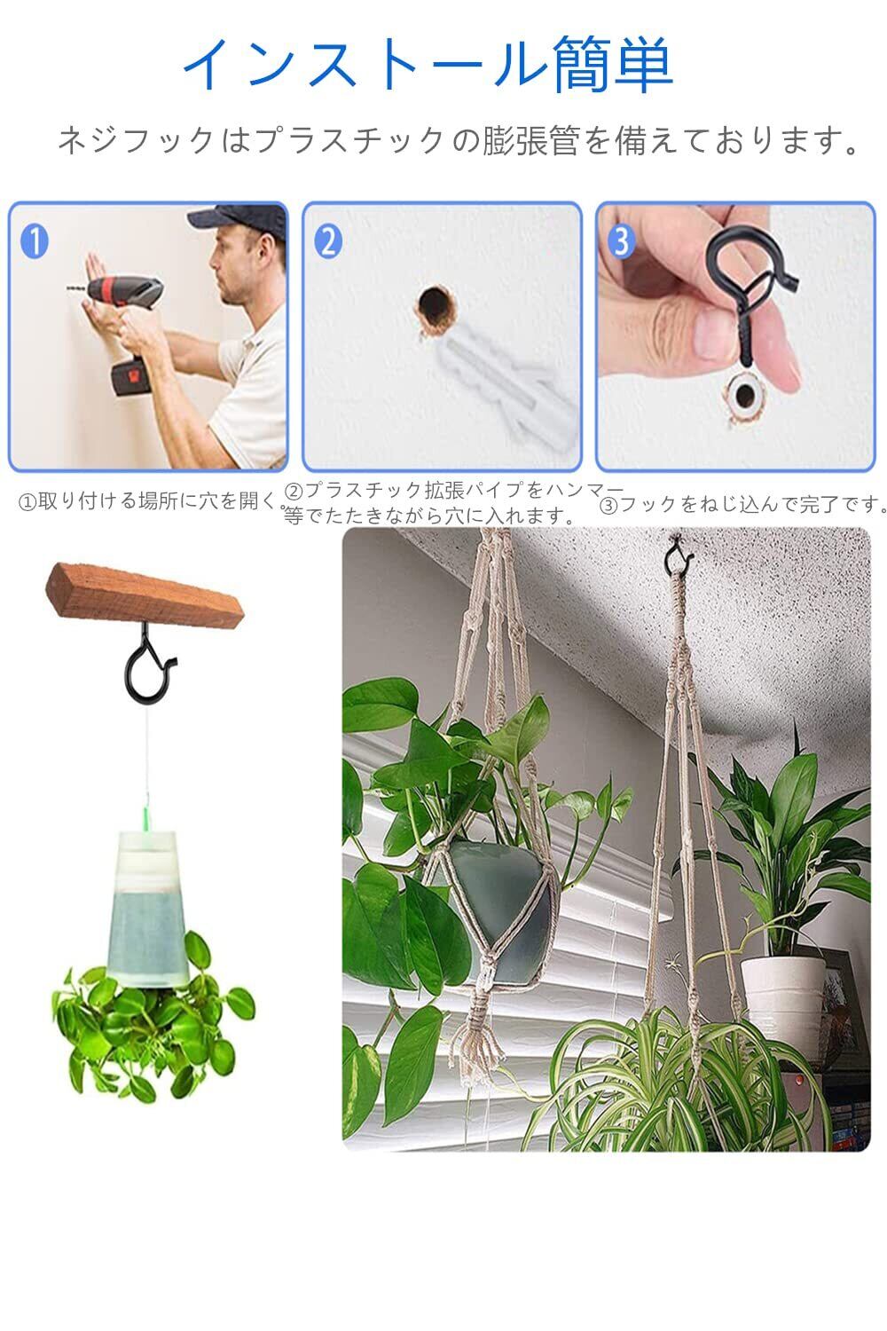 【取付簡単】ネジフックはプラスチックの膨張管を備えており、石膏板やレンガなどの硬い面に使用していて、ハンマーやスパナで直接木に当たることができます。