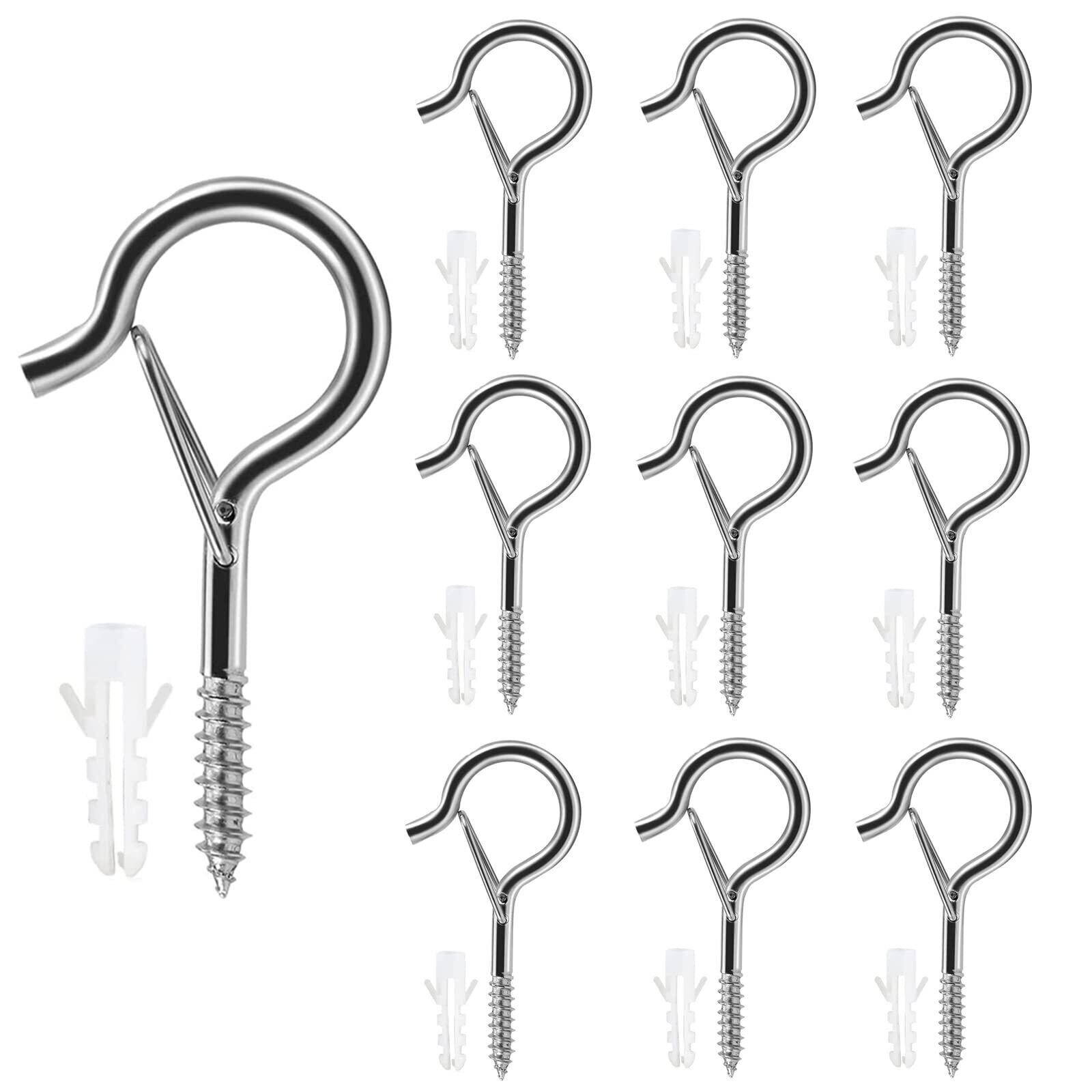 10個入り天井 フック全長55 mm 炭素鋼 安全バックルデザイン搭載 ねじ込み式 壁 ハンガーフック/植物/台所用品/風鈴などの吊り下げに最適 プラスチック拡張ピン付き (シルバー)