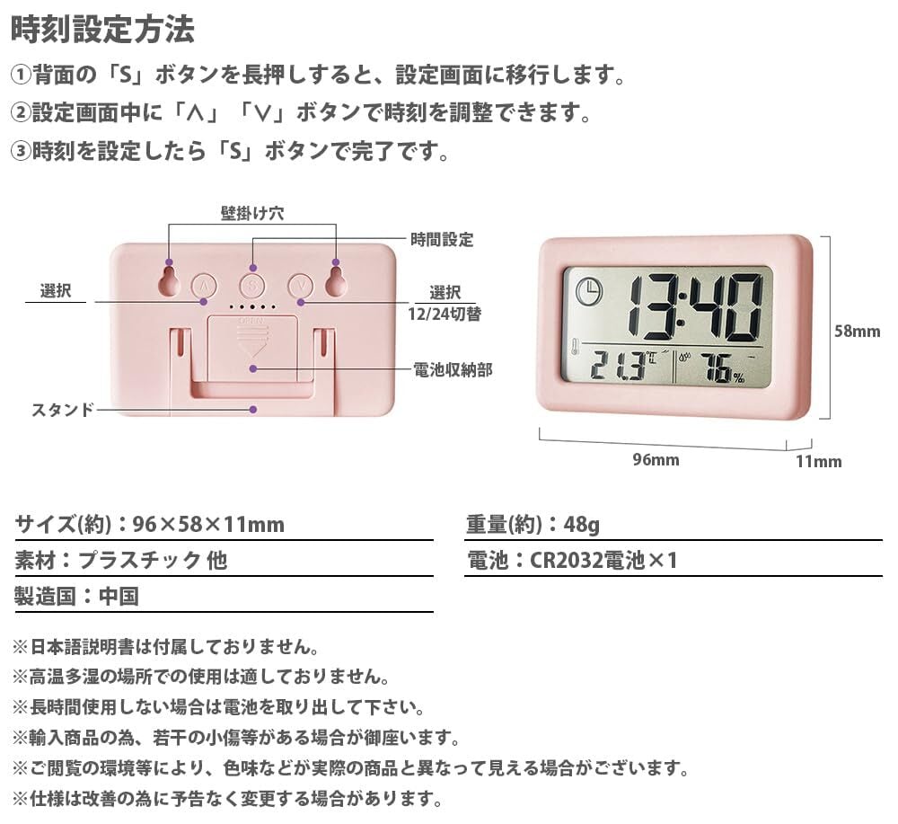 【人気】prendre デジタル時計 温湿度計 小型 コンパクト スタンド 壁掛け 置き時計 掛け時計 インテリア シンプル デジタル 時計 温度 湿度 (ブラック) PR-YD005-BK