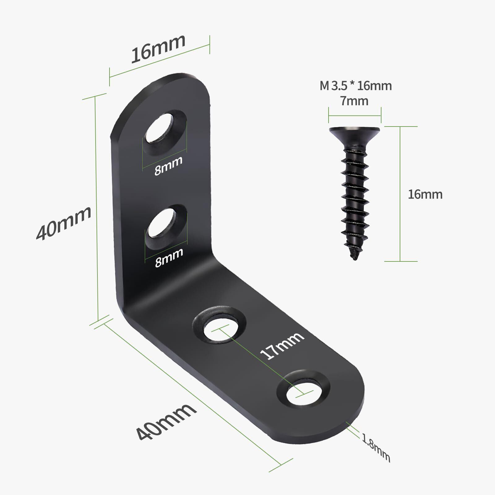 Litorange l型金具 黒 20個 40*40*16mm ネジ付き 厚さ1.8mm L字アングルブラケット棚受け金具 補強金具 接合金具…