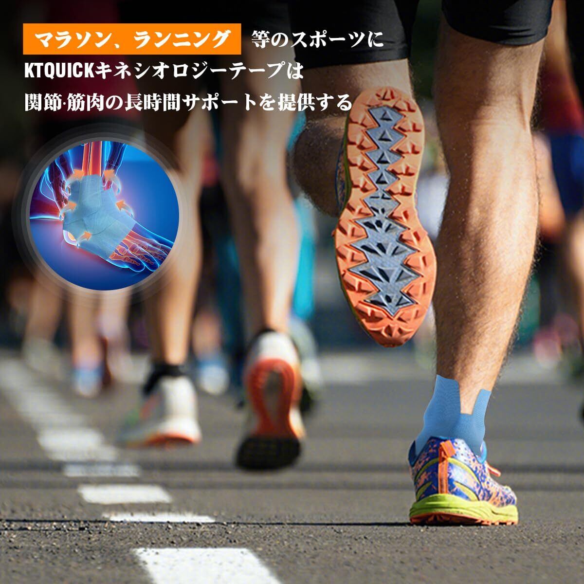 KTQUICK カット済みテーピング 足首 伸縮 テーピングテープ 12Pcs プレカットキネシオテープ マラソン スポーツテープ ランニング サポーターテープ