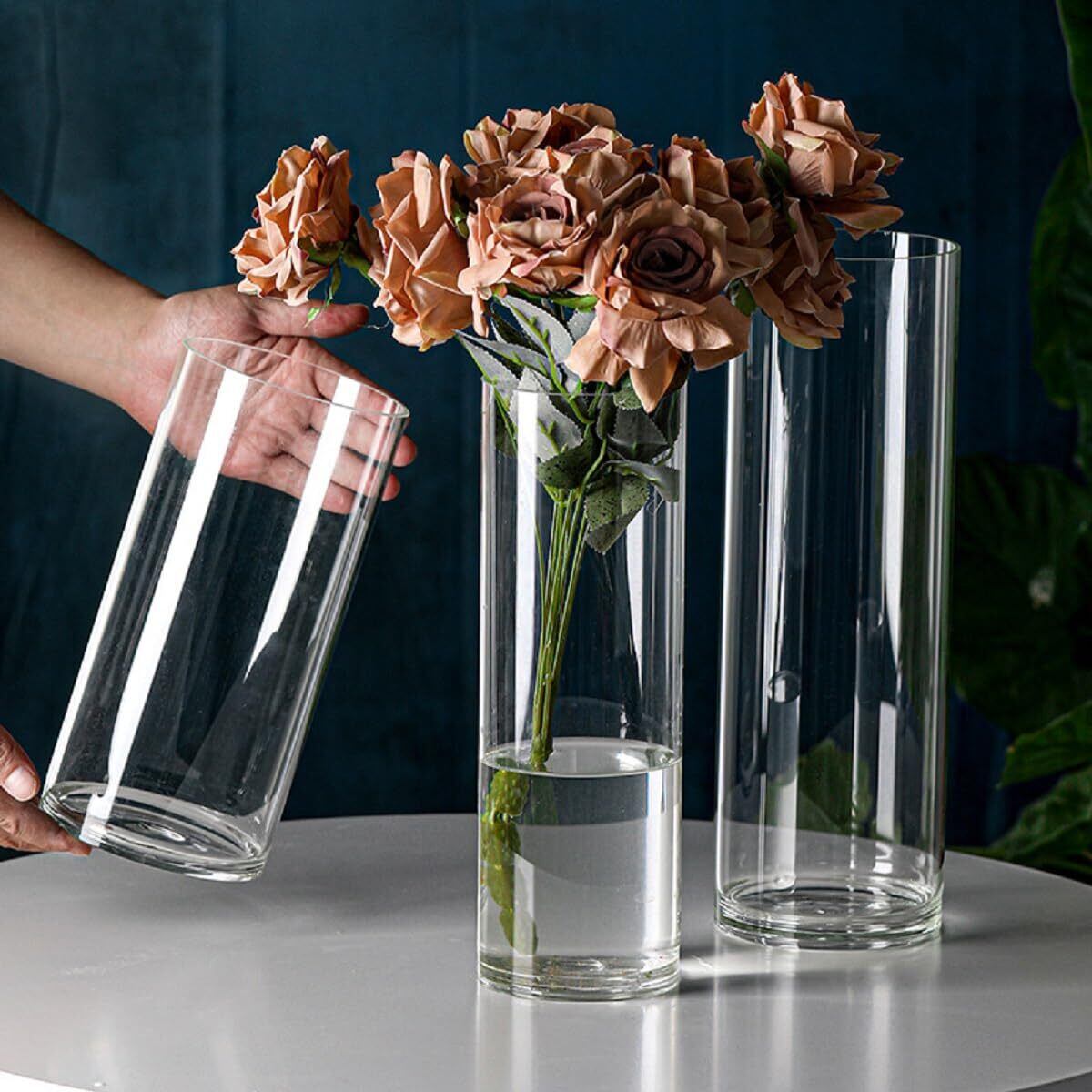 景徳焼 ガラス 花瓶 花器 シリンダー 円柱 花瓶 大 フラワーベース ガラス 割れない 一輪挿し北欧 透明 花器 シンプル クリア大きな インテリア 室内透明 広口 け花部屋 玄関 リビング プレゼン 贈り物 飾り (直径12cm 高さ25cm)