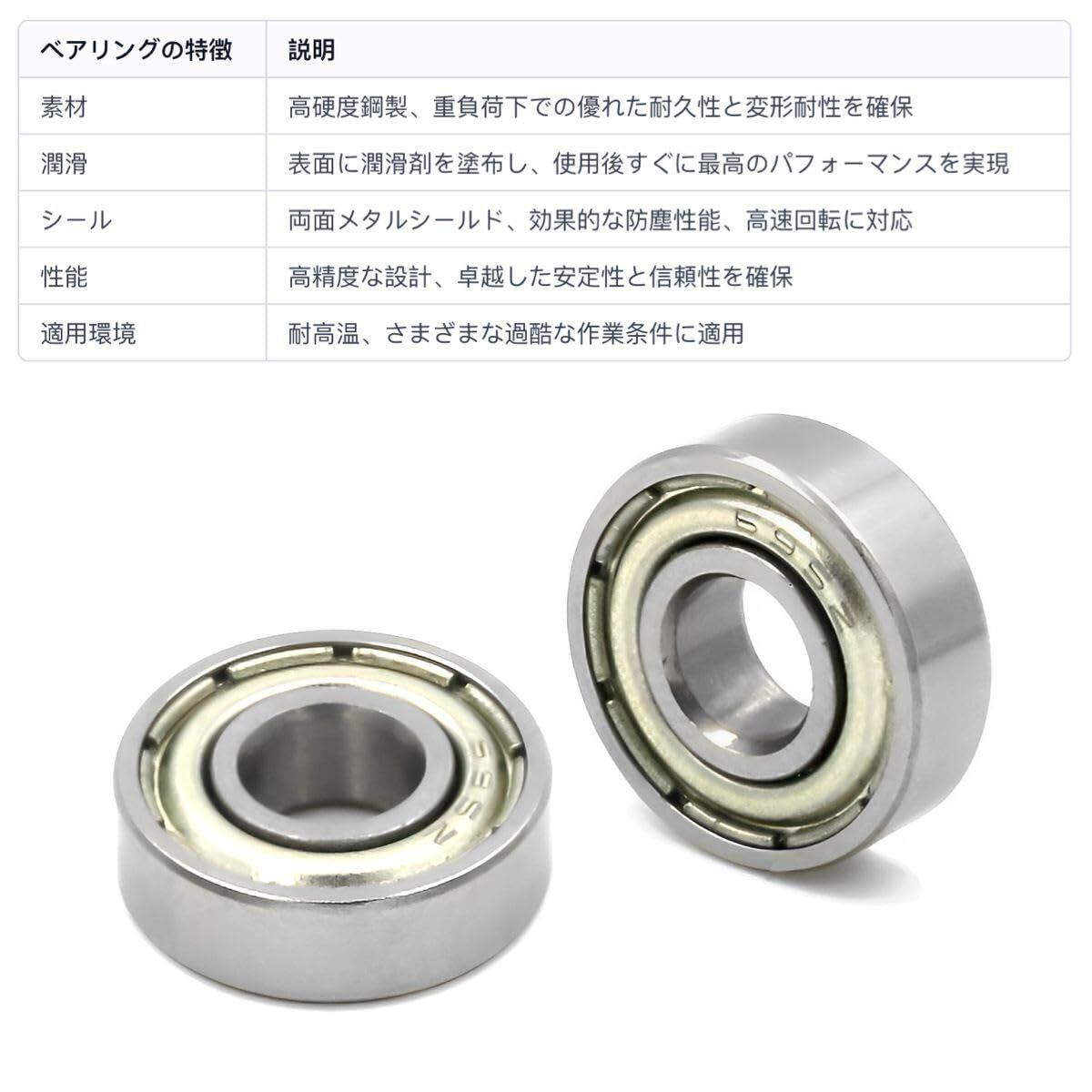 [サイズ] 609ZZ(内径= 9mm、外径= 24mm、厚さ= 7mm)のサイズで、小型でありながら高速動作を発揮します。