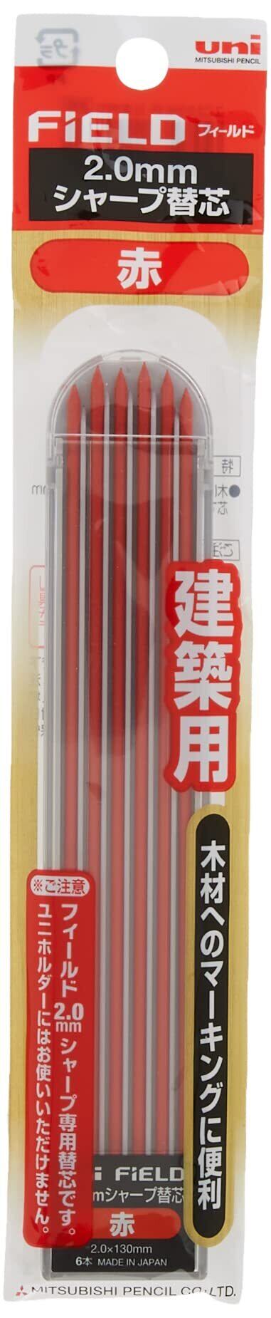 三菱鉛筆 uni フィールド建築用 2.0mm シャープ替芯 uni2.0-310 赤 6本入 U203101P.15 品番:ユニ2.0-310 1P.15 2.0mmシャープ「FiELD/フィールド」専用の替え芯です。。※詳細画像に一部別カラーの商品を使用しています。。本体品番:M207001P.15。。サイズ:縦=143mm 横=25mm 厚さ=7mm。商品色傾向:赤。。表紙パターン:無地。