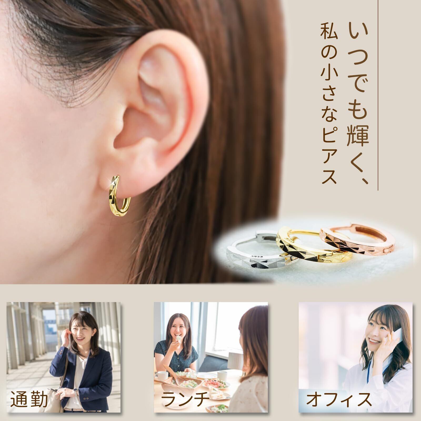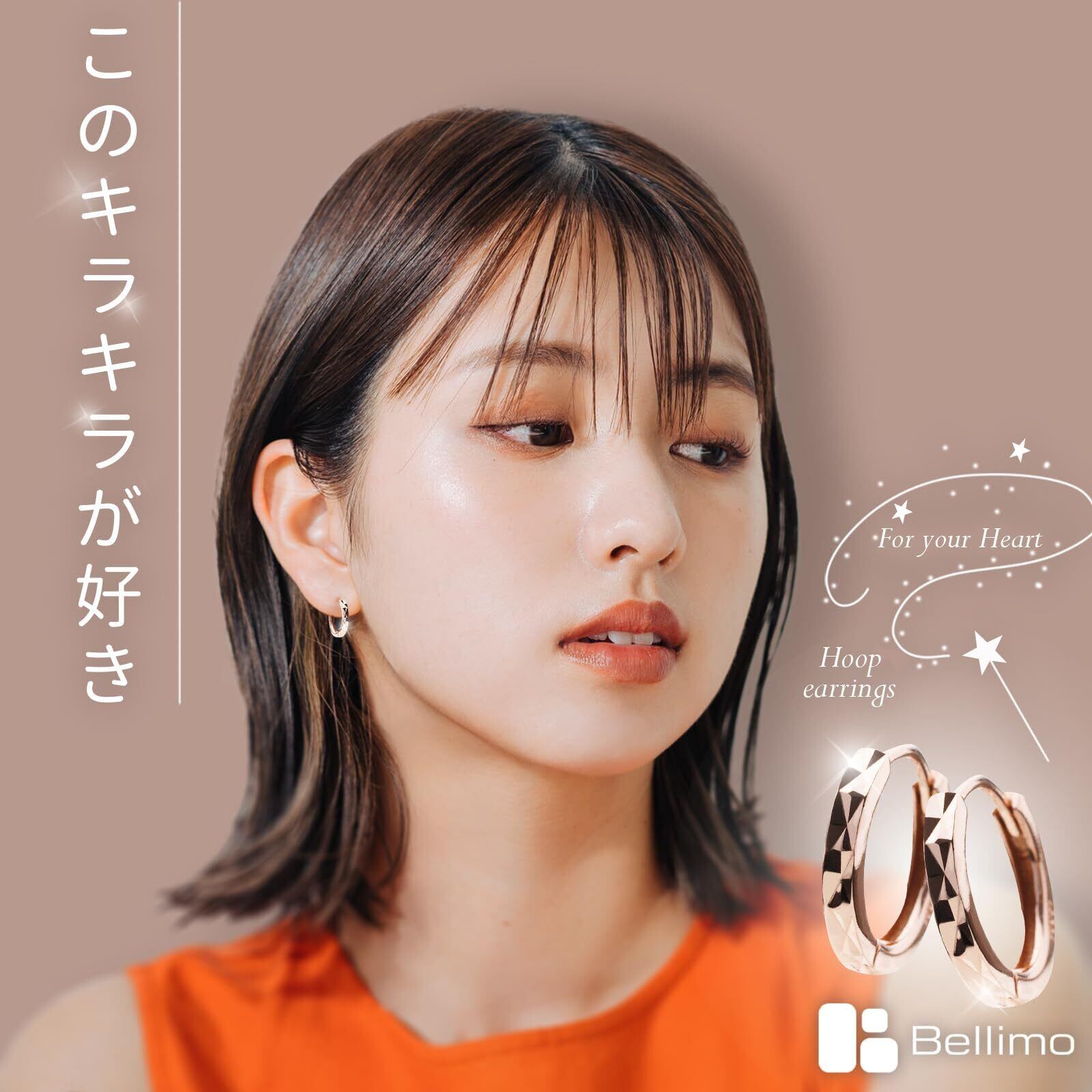 【デザイン】ダイヤモンドの様な平面のカットを施した小さめのフープピアスです。光を反射しキラキラと耳元で輝きます。程よい存在感があり魅力的。あなたの生活が豊かになってほしい、輝いてほしい。Bellimoの願いです。