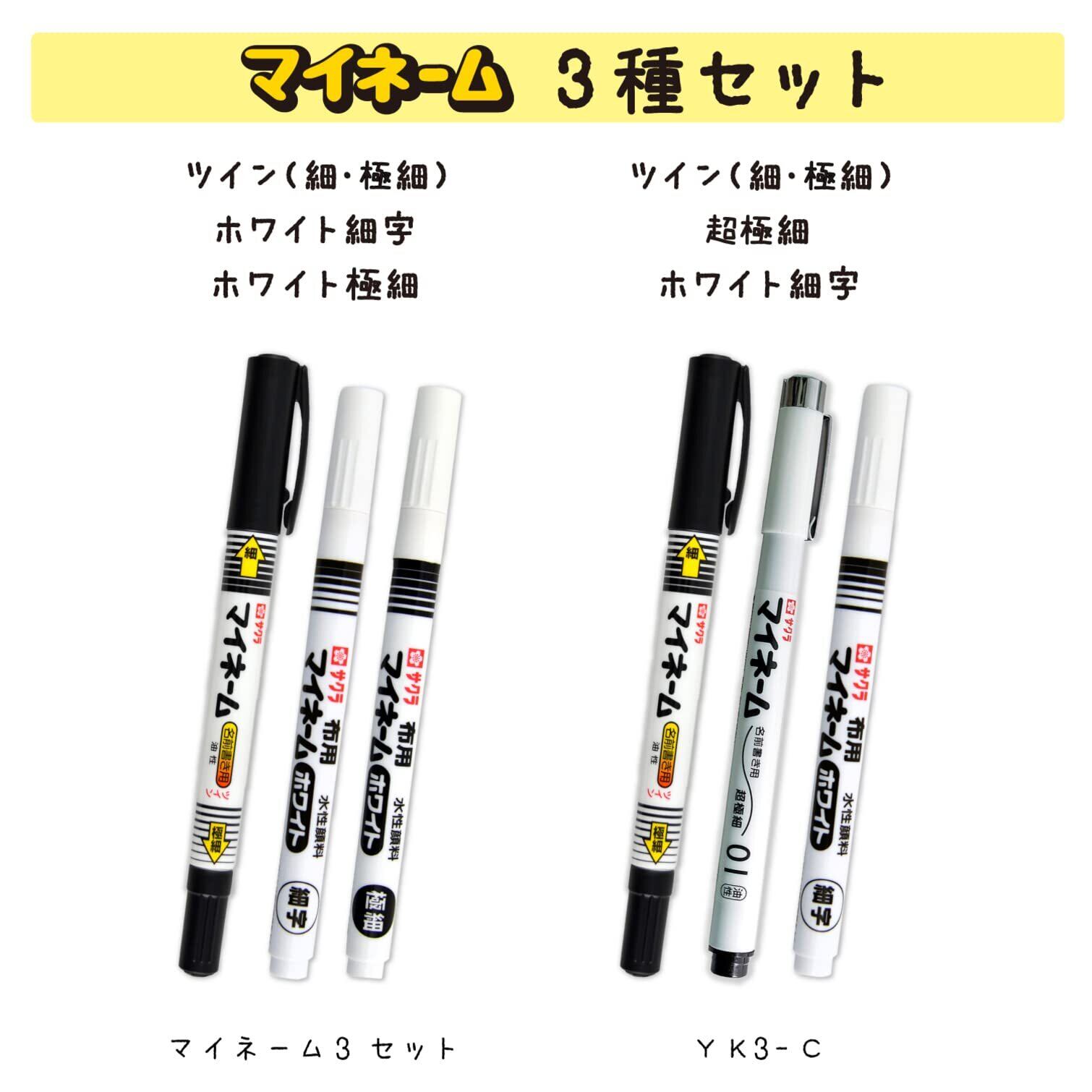サクラクレパス 水性 ネームペン マイネーム ホワイト 細字 3本 YKM-S#50(3)