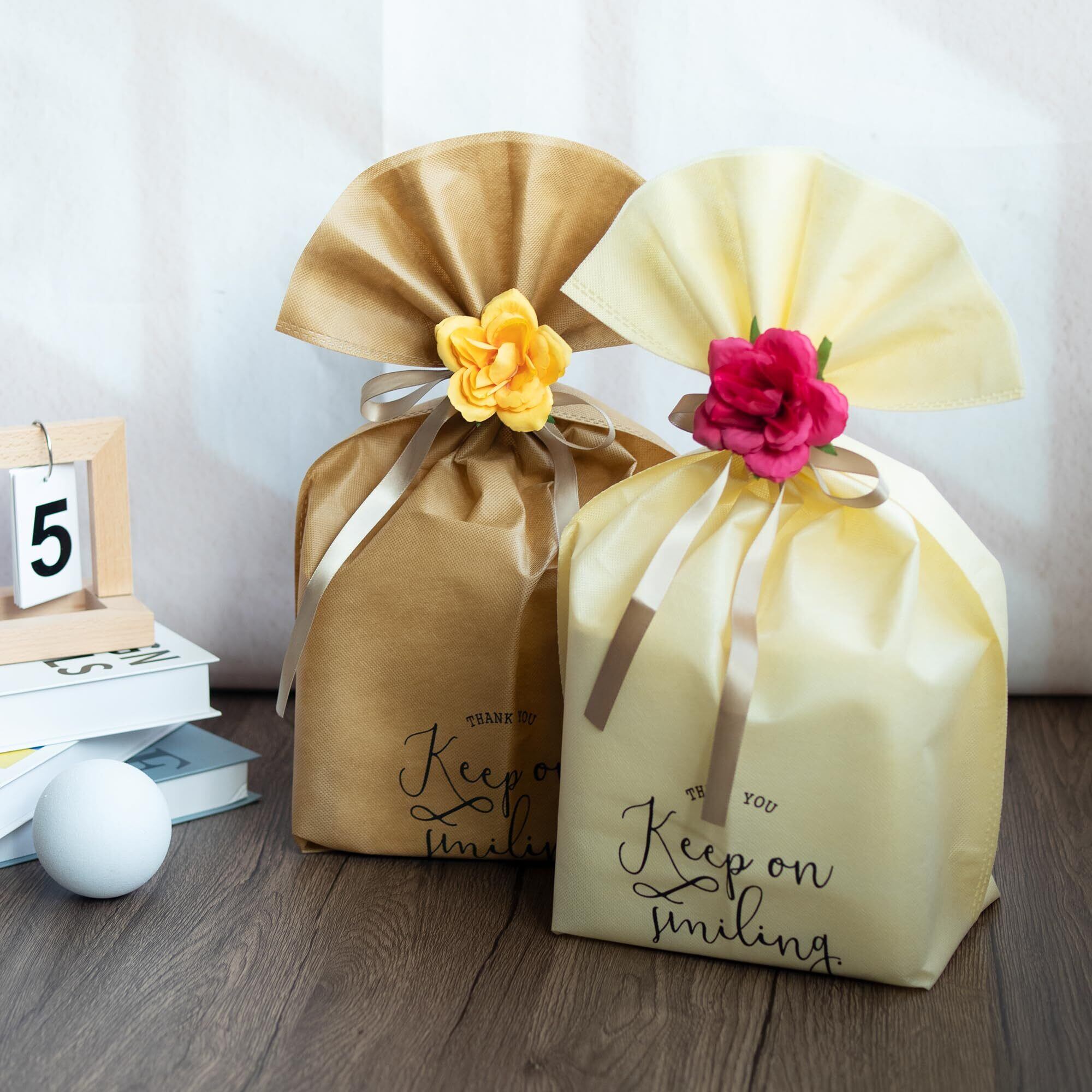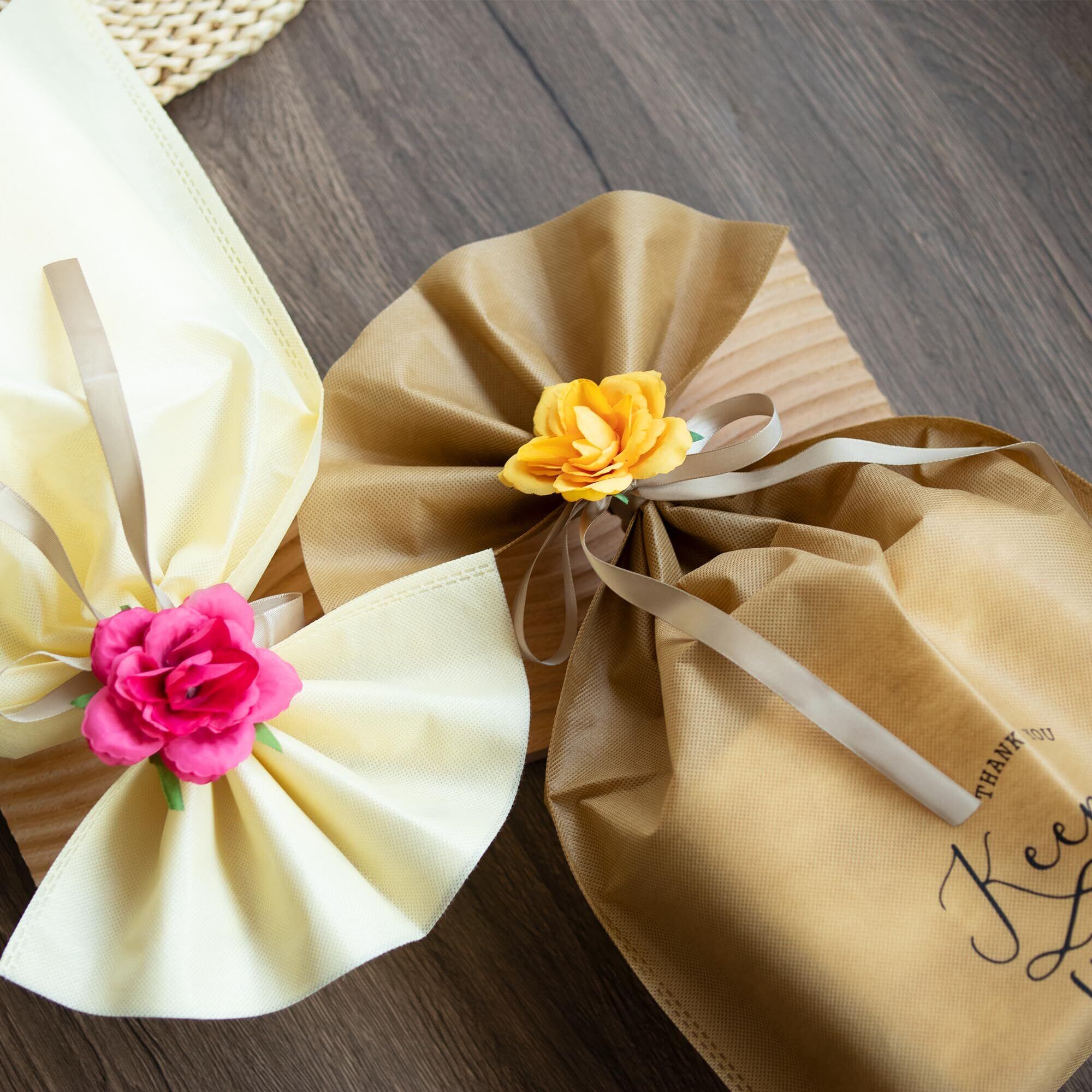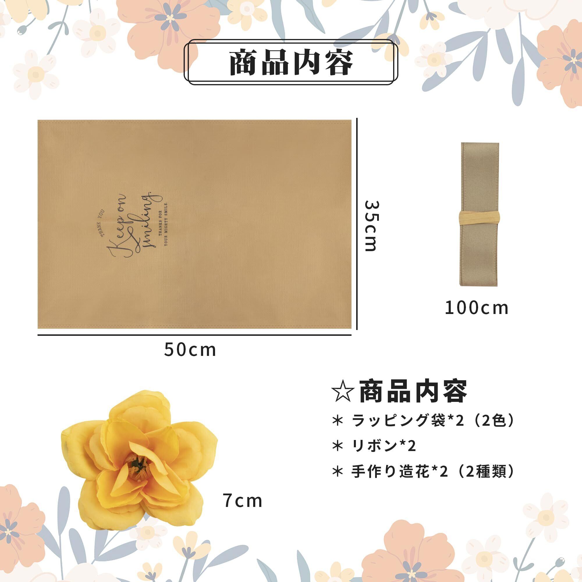 【商品内容】2枚特大サイズのラッピング袋(2色):50*35㎝ 2枚手作り造花(2種類):7㎝ リボン*2:100㎝ 合計6点