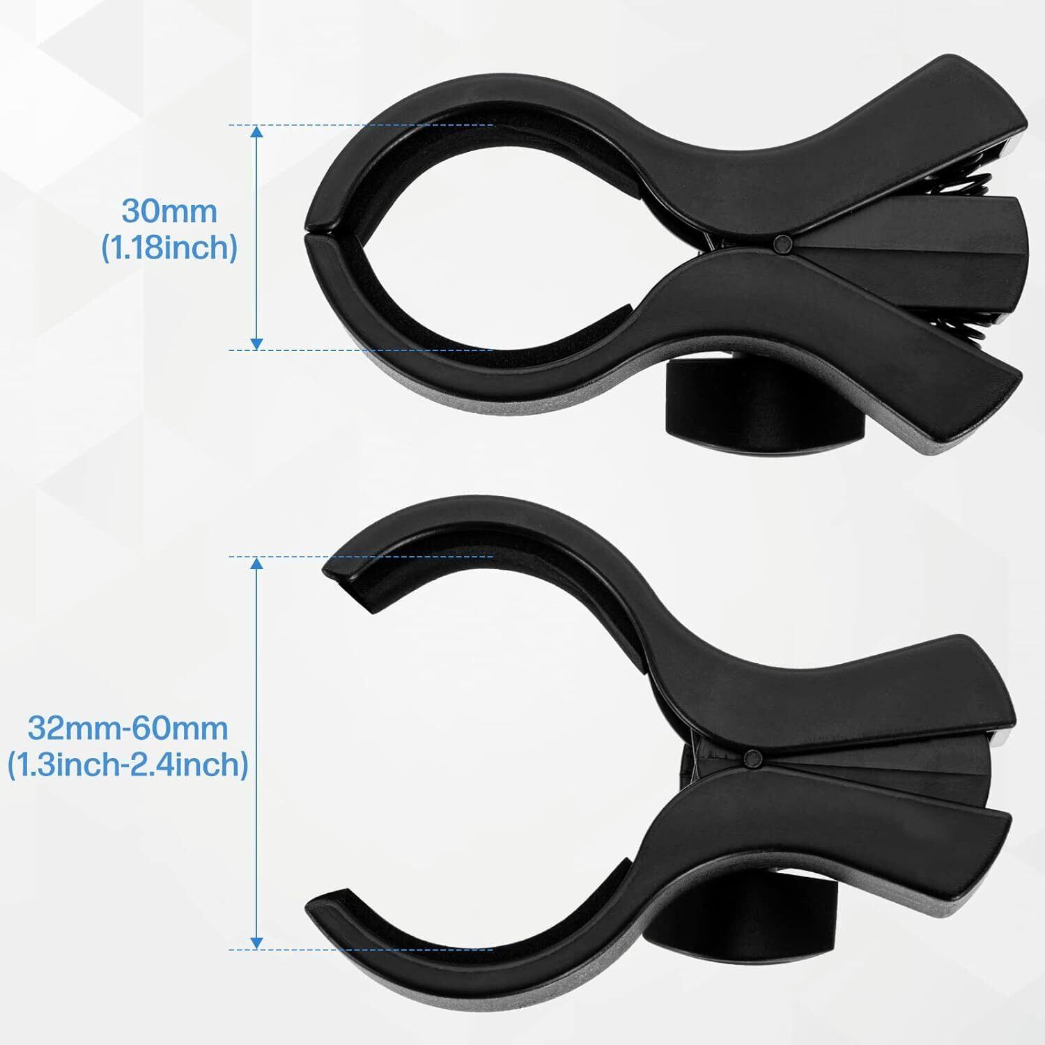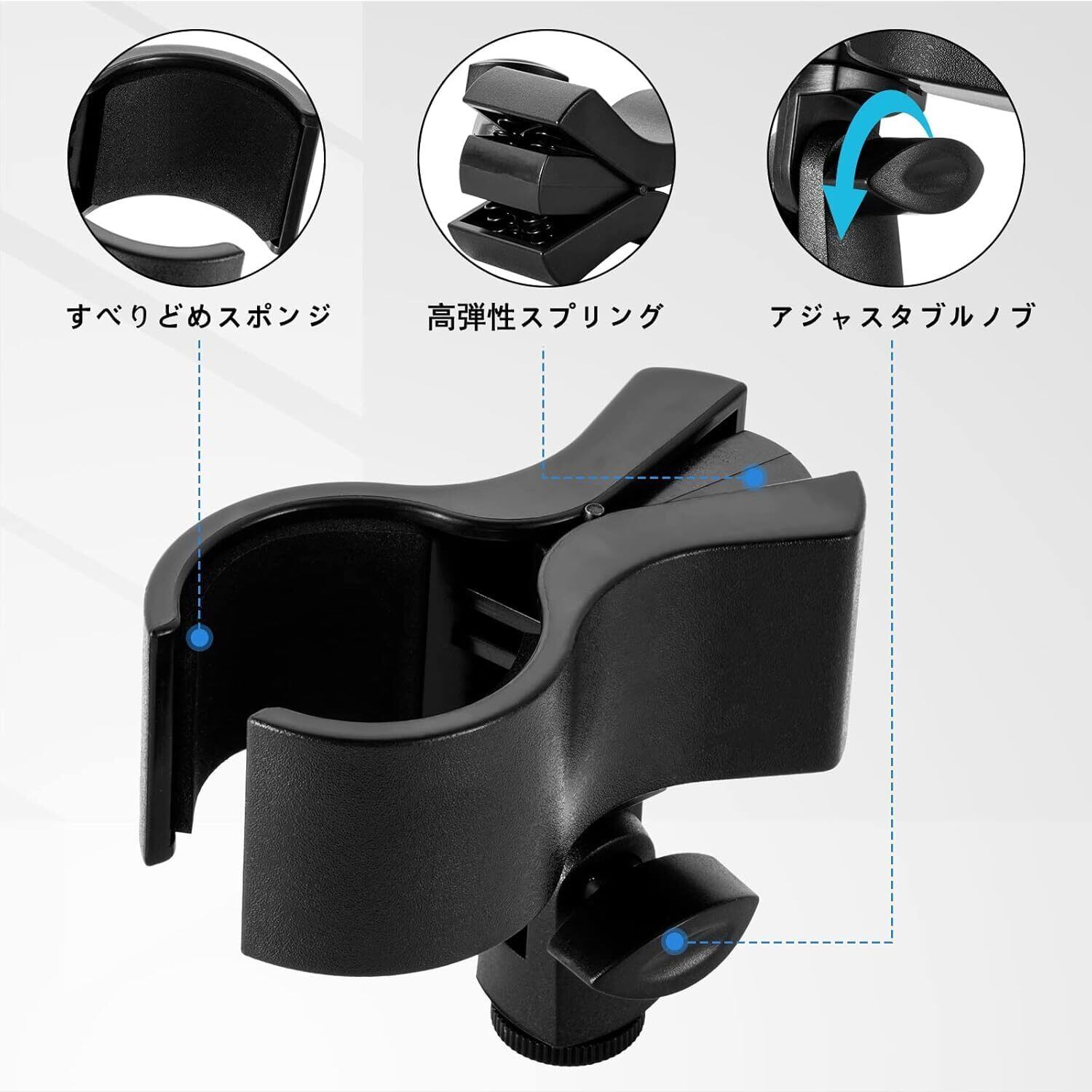 調整可能なデザイン: 外径32 mmと60 mmのマイクに適したマイクホルダーです。クリップの開口部を調整することで、様々な太さのマイクに対応可能です。