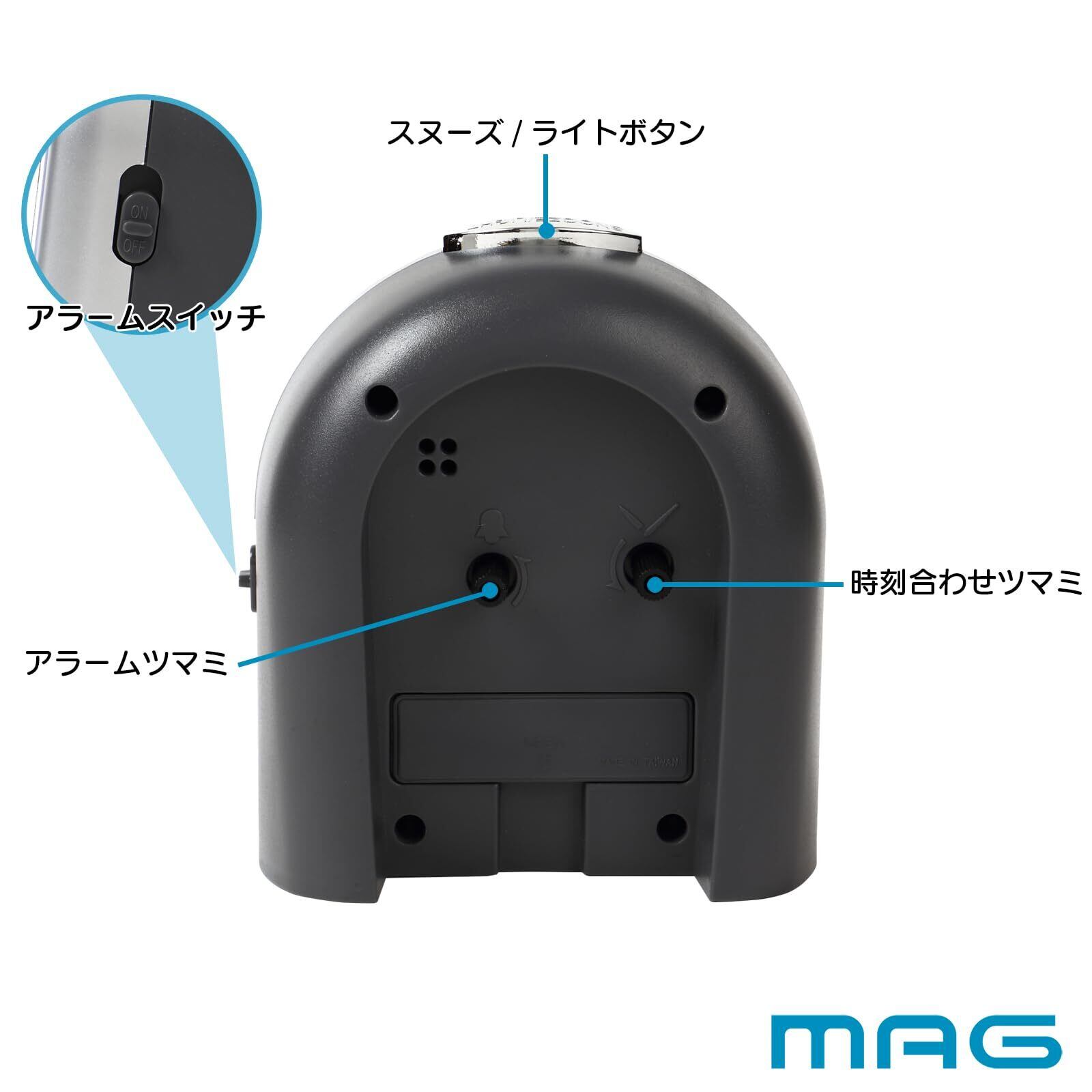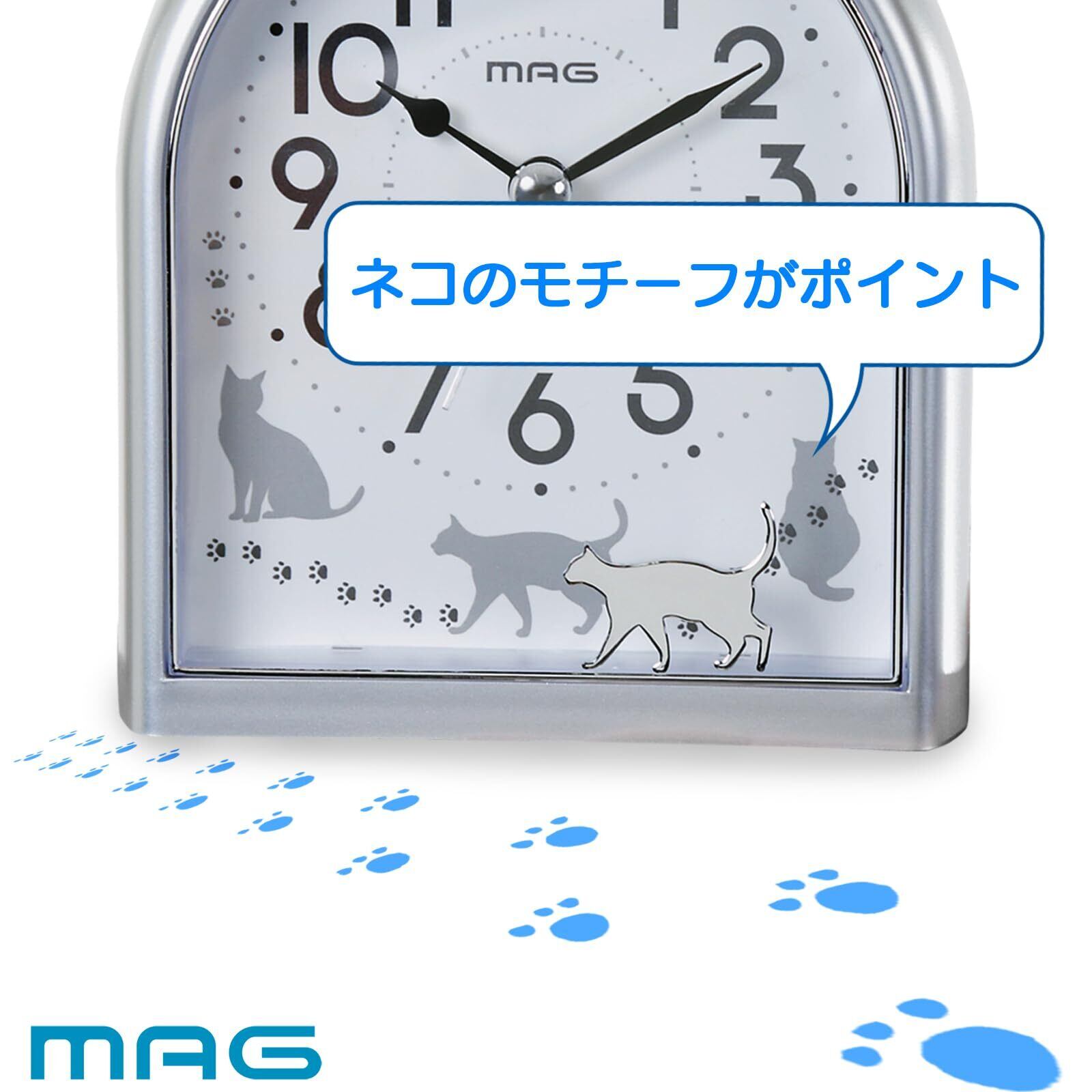 MAG(マグ) 目覚まし時計 置き時計 アナログ ねこ ネコ 動物 かわいい 子供 静音 連続秒針 電子音 アラーム スヌーズ ライト シルバー ミグレイト T-747 SM-Z ノア精密