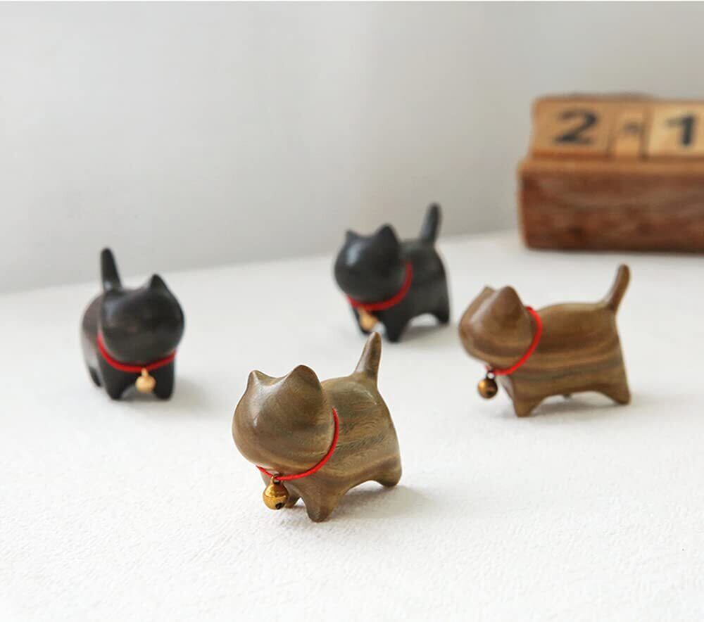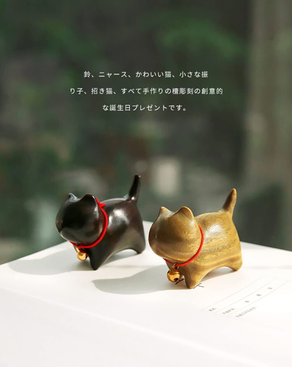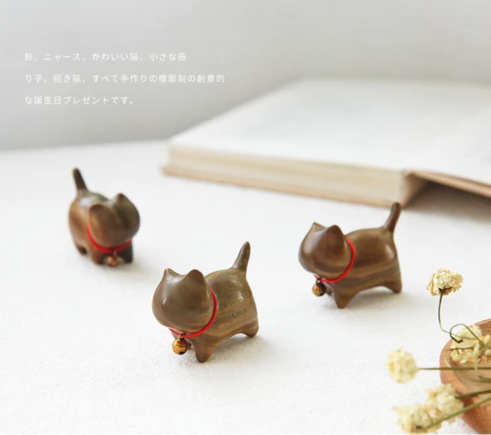 天然素材で精巧に作られています:手作り可愛い招き猫、想像力の余地を残す。木の色や縞模様が若干異なりますので、ご了承ください。