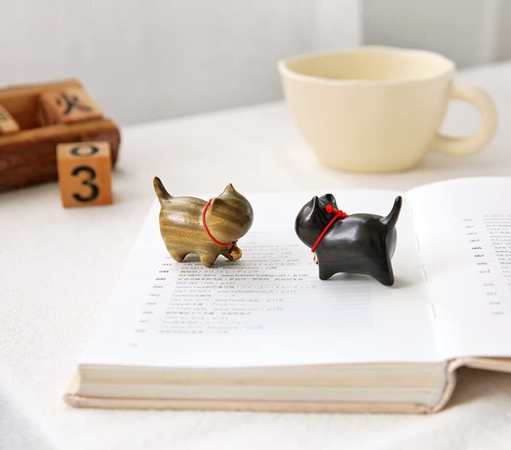 WOWTAC 猫 置物 玄関小物 インテリア飾り 木製招き猫 幸運 招き 誕生日プレゼント (黒檀)