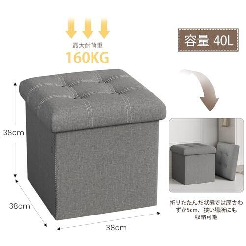 YOUDENOVA 収納スツール 折りたたみ 収納オットマン 足置き 反発記憶フォームパッド フットレスト 踏み台 リビング/玄関/寝室適用 耐荷重160kg(グレー、38x38x38cm)