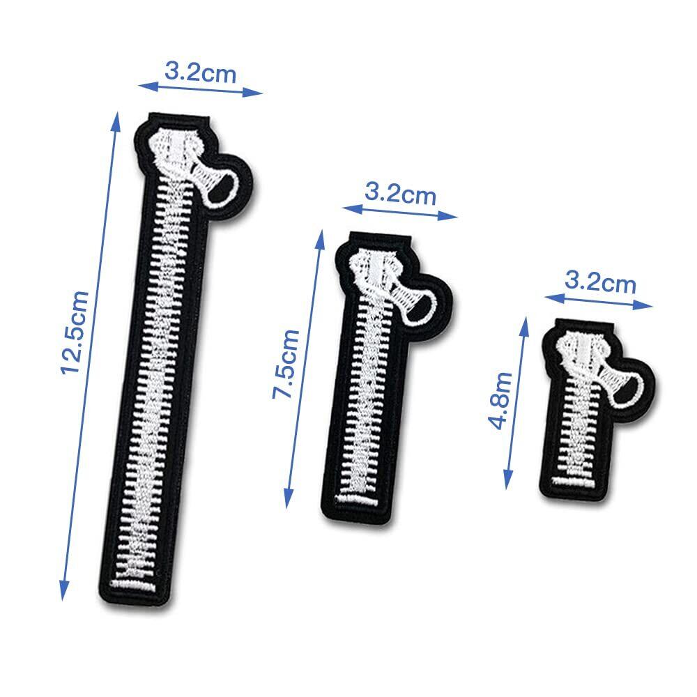 【数量限り】ファスナー ワッペン 6枚セット 大中小 ジッパー チャック 刺しゅうワッペン ししゅう アップリケ パッチ アイロン接着 縫い付け アイロンワッペン 補修 DIY 手芸 幼稚園 保育園 (大中小)