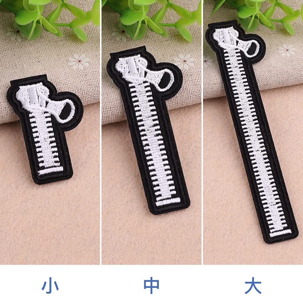 ファスナー ワッペン 6枚セット 大中小 ジッパー チャック 刺しゅうワッペン ししゅう アップリケ パッチ アイロン接着 縫い付け アイロンワッペン 補修 DIY 手芸 幼稚園 保育園 (大中小)