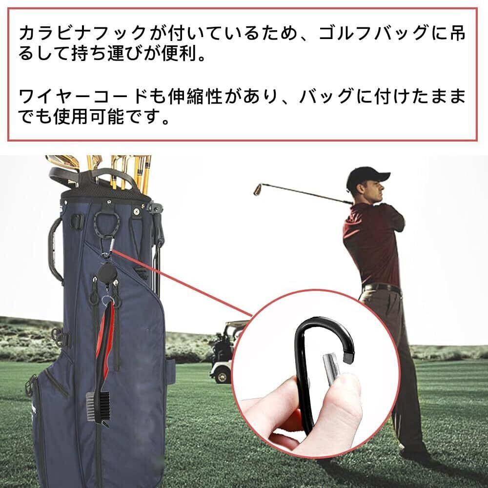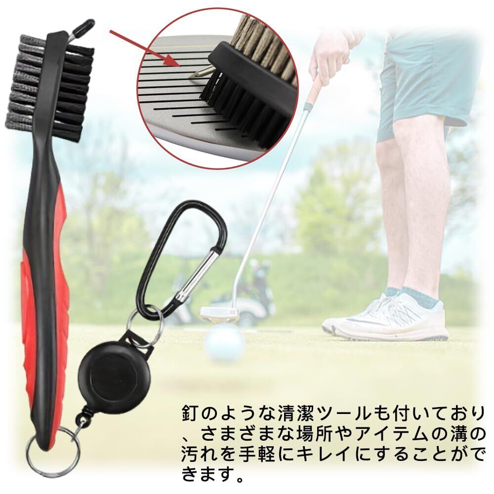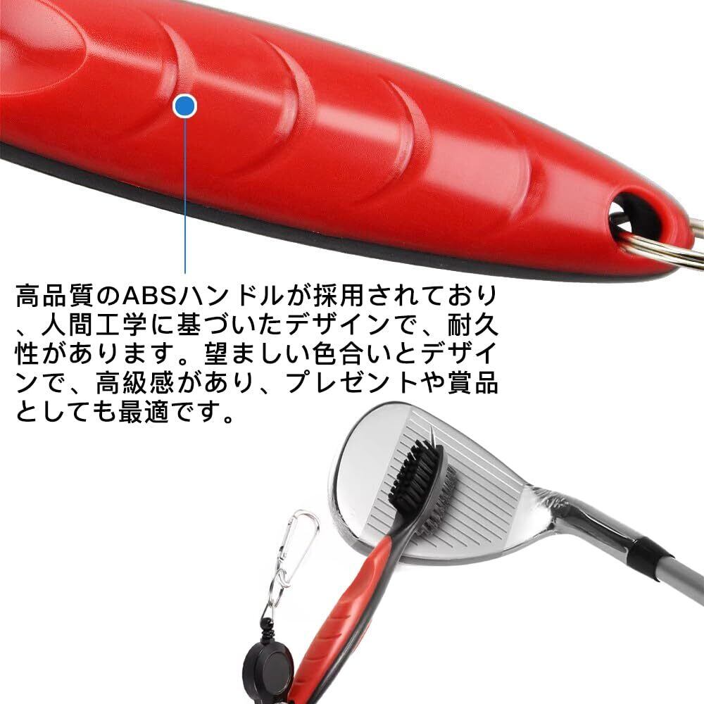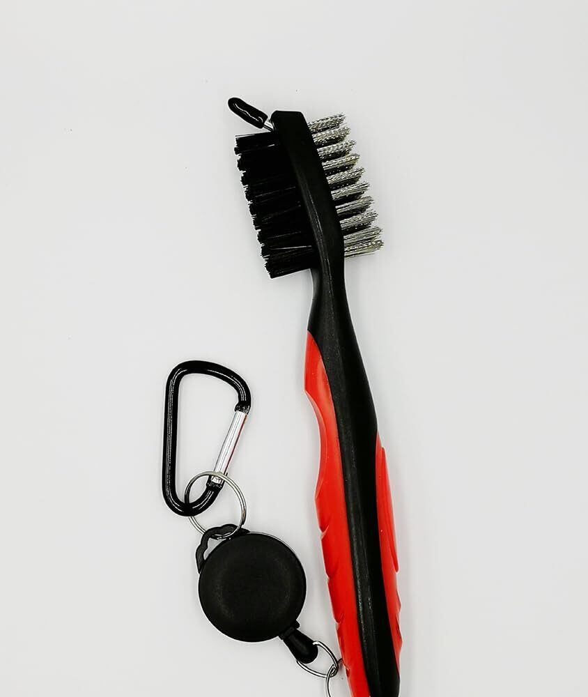 サムコス ゴルフ ブラシ 3in1 両面携帯式ブラシ ゴルフクラブ清潔用 伸ばすリールとカラビナクリップ付き 便利 軽量 多用途 (レッド)
