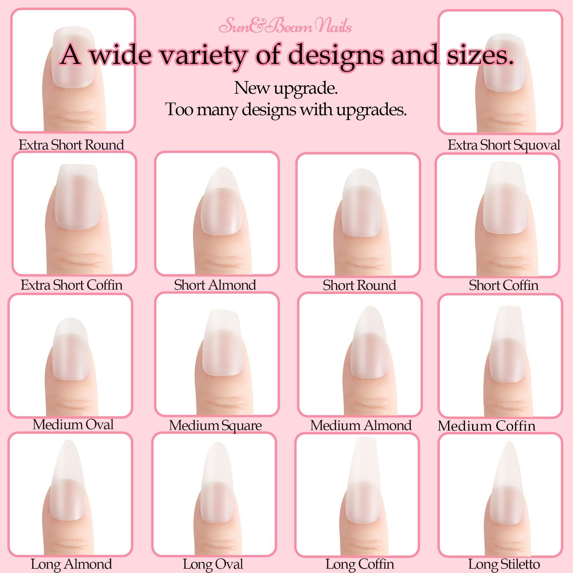 ?【製品仕様】型:短いアーモンド マット。サイズ:15種。総数:240枚(15サイズ×2手×8パレット)※サイズ詳細は製品のサイズチャートをご覧ください。