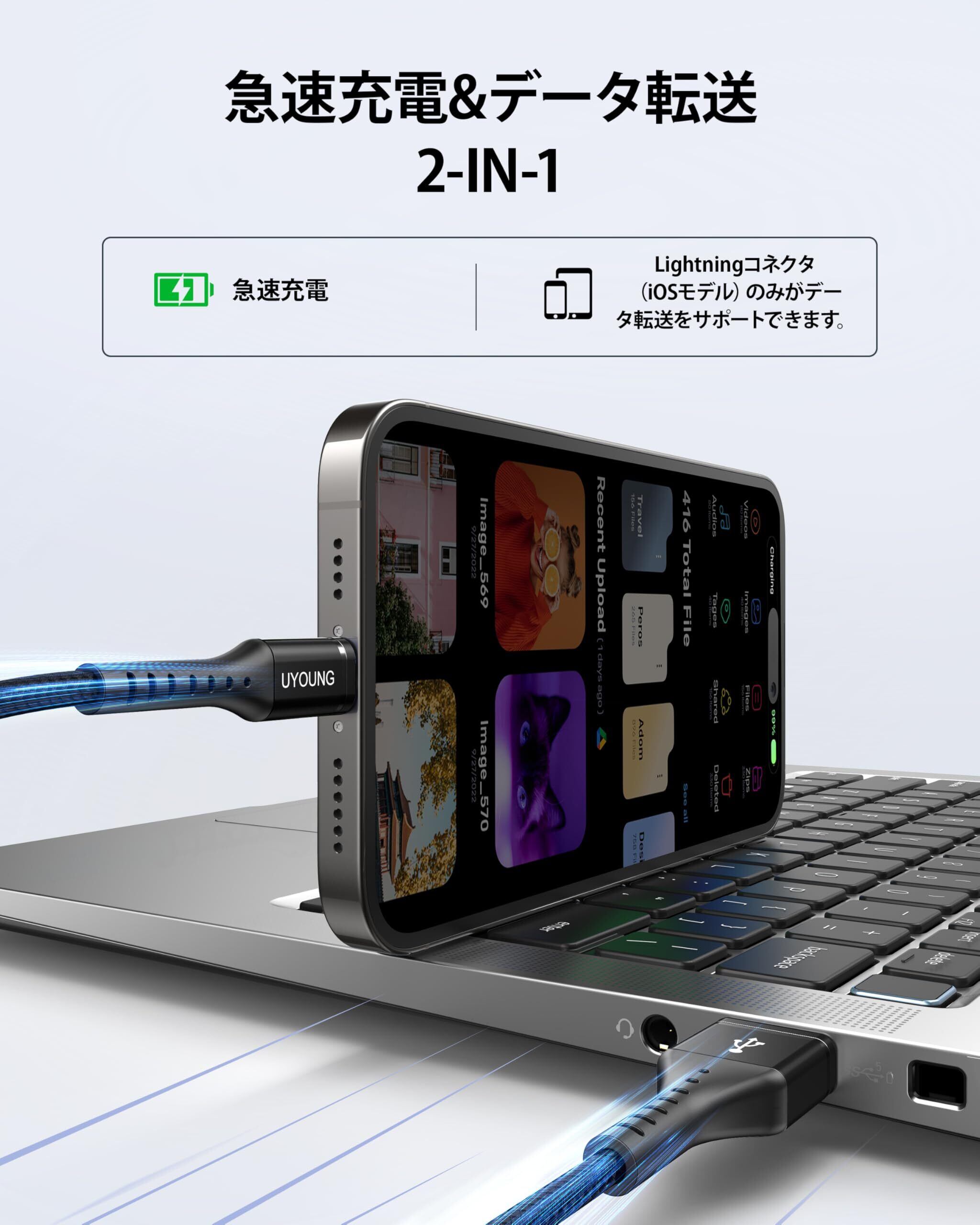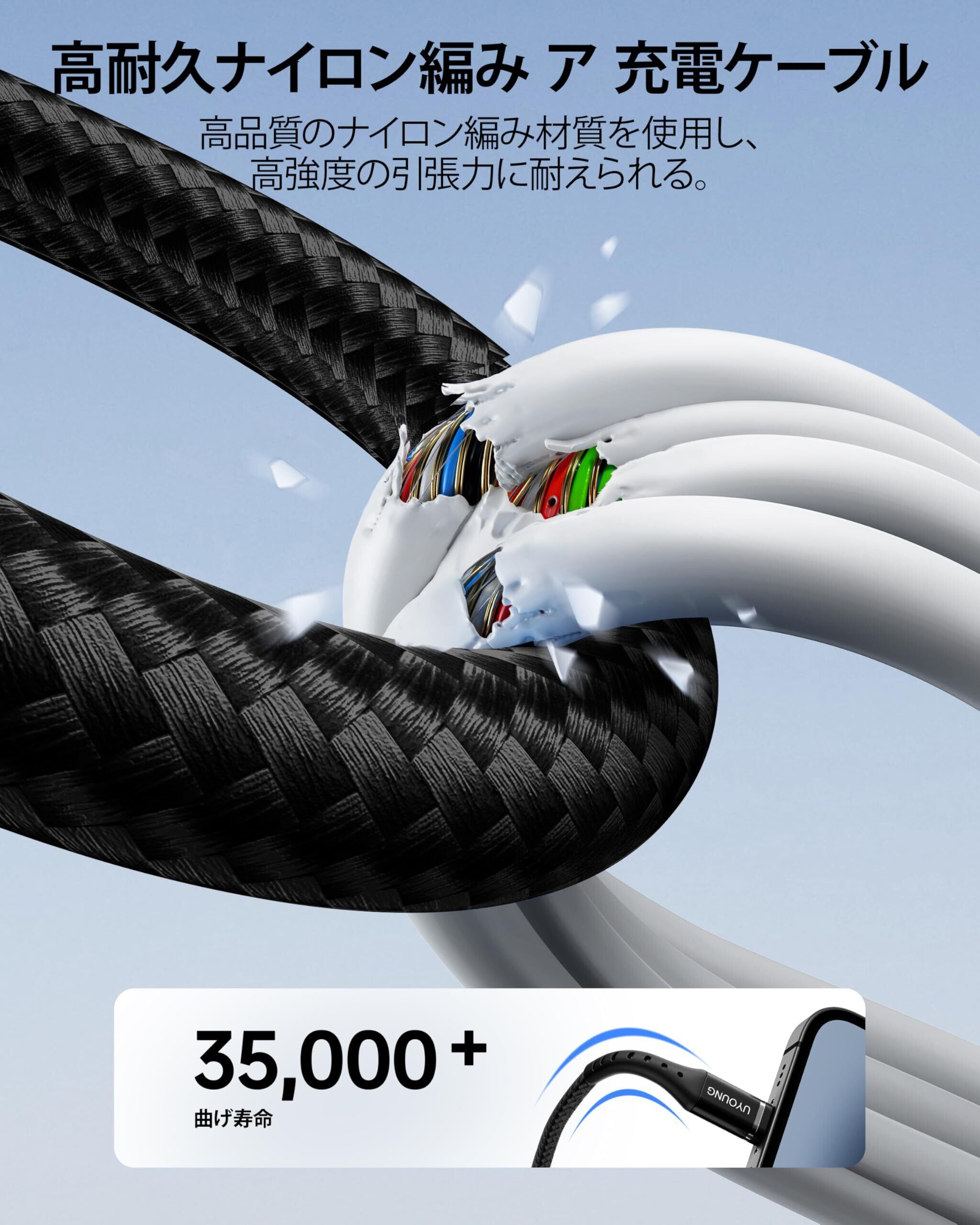 【高耐久ナイロン&断線防止設計】柔軟性と耐久性を兼ね備えた二重編込高耐久ナイロン素材を採用、iPhone充電ケーブルがより頑丈で柔軟になります。根元強化デザイン、10000回以上の折り曲げテスト、普通のケーブルより長い使用可能です。