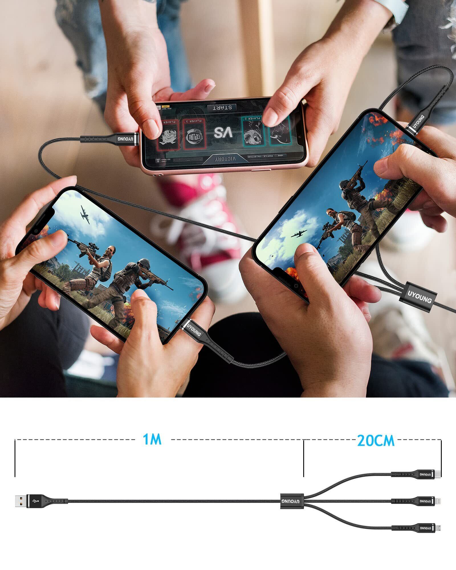 【3台同時充電 】1つのUSBポートから3台のデバイスが同時に充電できます。ライトニングデバイス、Type-C機器、マイクロUSB機器を対応し、3台接続機器へ同時に急速充電を対応します、充電スピードも早くて 本当に便利です。