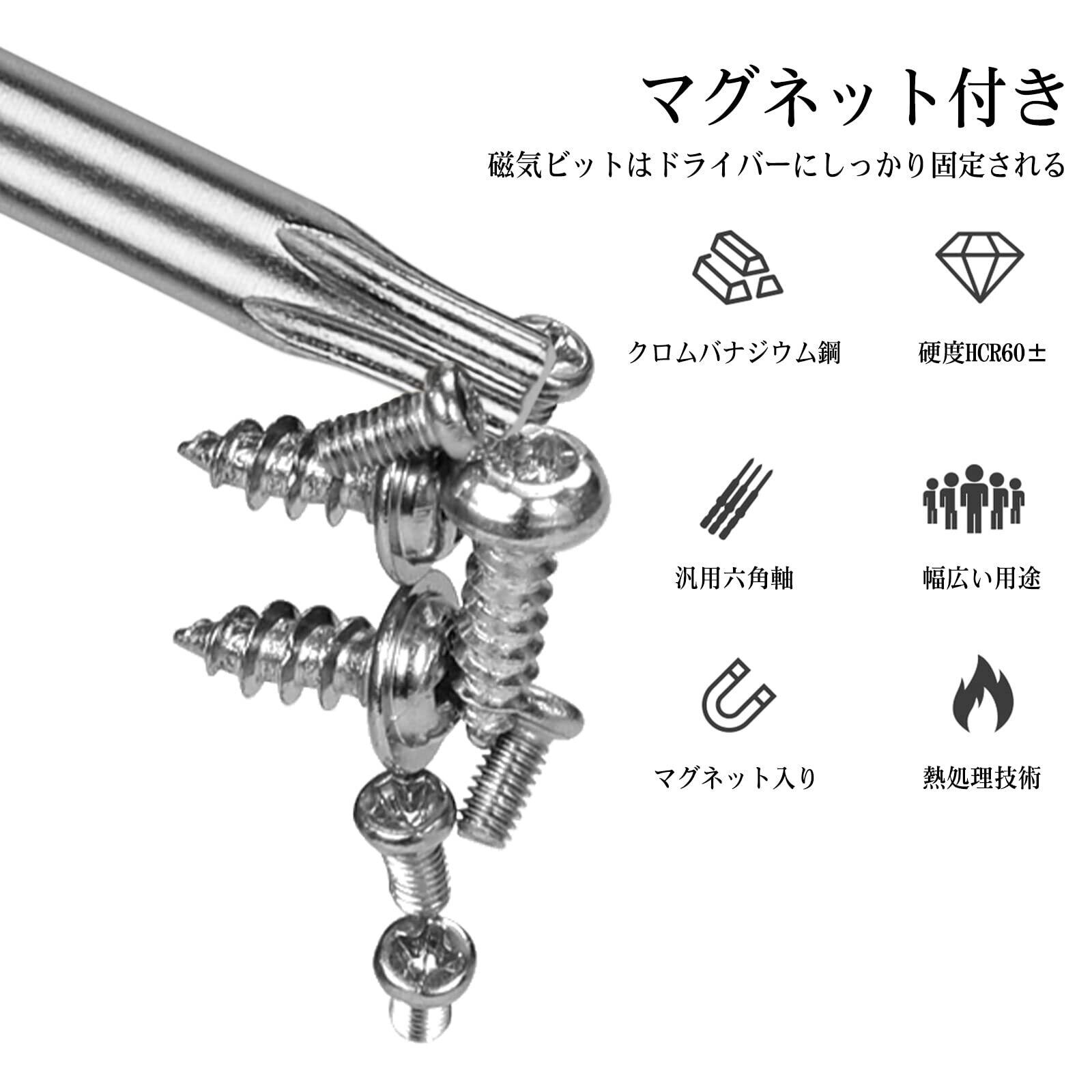 【カラーリング】カラーリングでサイズが分かりやすいです。ホルダー付き、ビット整理収納に便利です。ビットはマグネット入ります。奥深い場所にも便利なロングタイプです。
