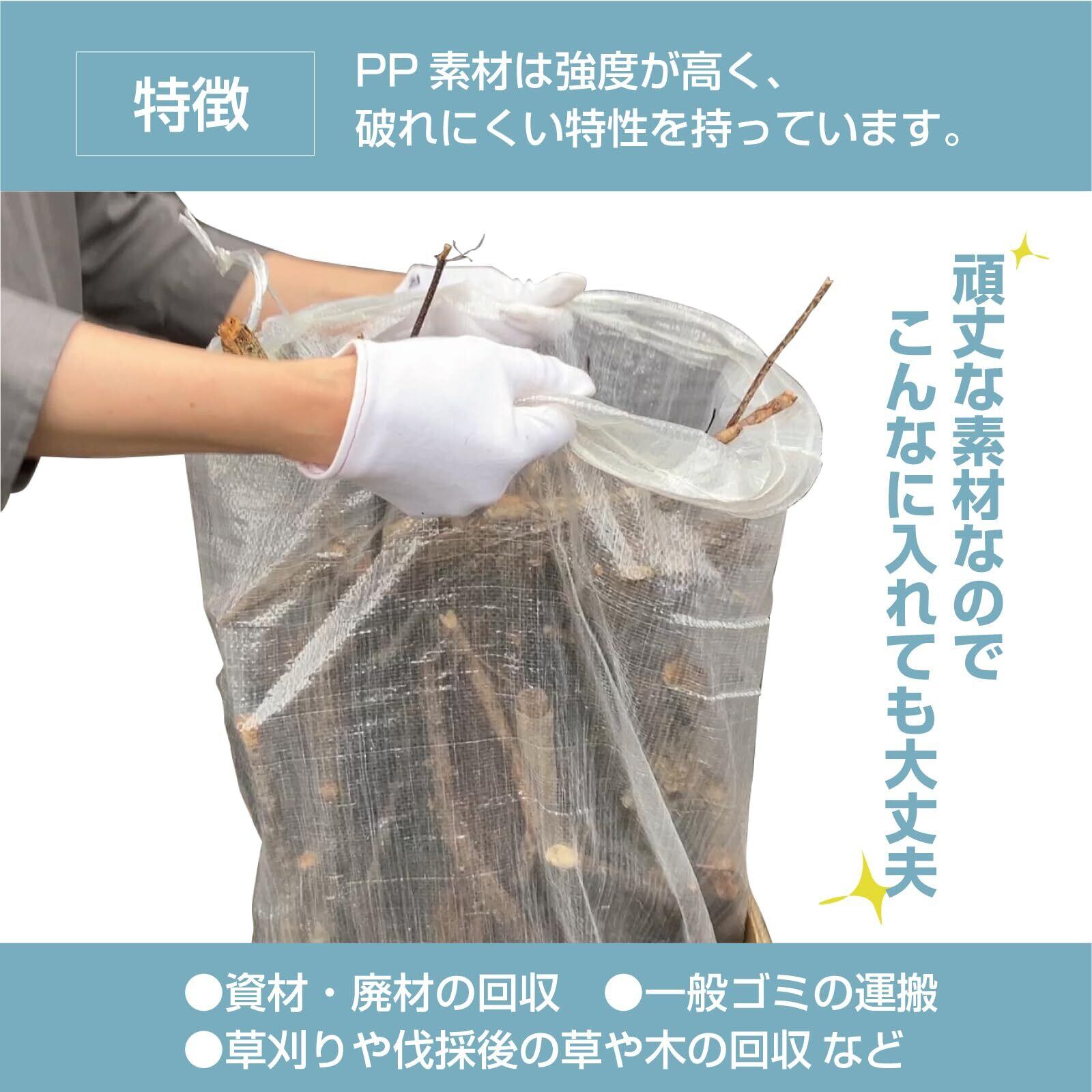 透明ガラ袋 半透明ガラ袋PPガラ袋25枚入り 口紐付き 縦900mm 横600mm 業務用 土のう袋 使い捨て袋 収納袋 木材袋 ゴミ袋 ガレキ ゴミ分別可能